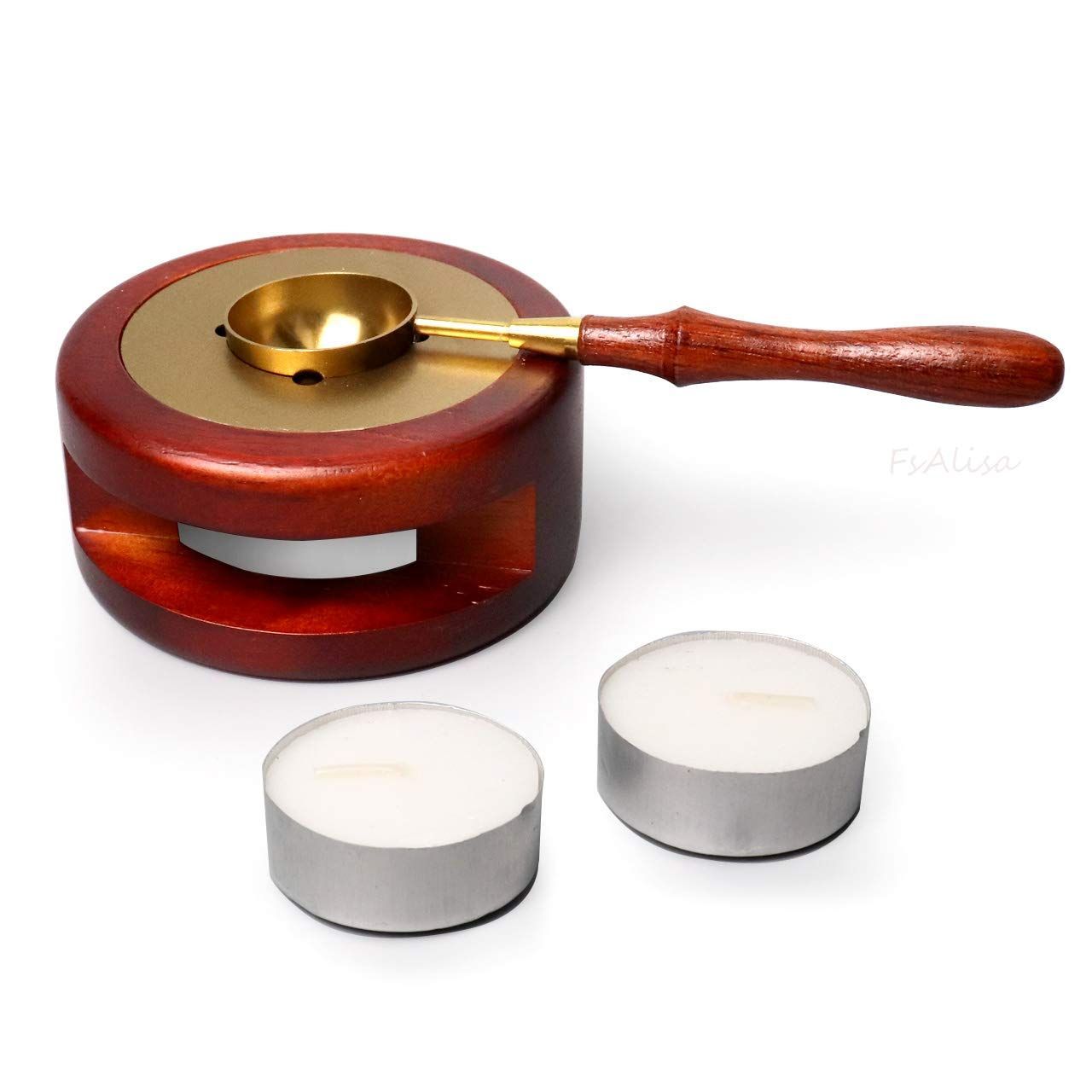 FsAlisa シーリングワックス 小粒 シーリングスタンプ 封蝋 ワックス炉 スプーン ロウソク セット シーリング ワックス スタンプ用 招待状 結婚式 祝福 告白 記念日 誕生日 祝い 手紙 ゴールド レッド (ワックス炉セット)