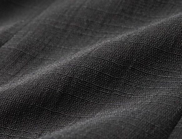 スーツ風ワンピース素材は、艶・清涼感・黒の色調に優れたスーパーブラックです。