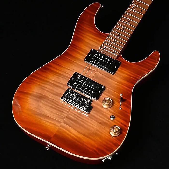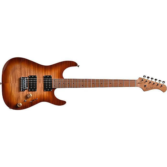 幅広く対応できる FM/RSM ネック ● 幅広い表現を可能とする 24 フレット仕様 24 フレット仕様を採用したことで、音域が広がるため、演奏性も広がります。 ハイポジションを使用したメロディや、スウィープでローからハイまで縦横無尽に一掃するプレイングなどに適しております。 テクニカル系ギタリストの方はもちろん、最近よく耳にするネオソウル系のギタリストの方にも是非演奏して欲しい仕様です。 ● ローステッドメイプルネック採用 ネックには Bacchus の新機軸でもあるローステッドメイプルを採用。 ローストする工程上でゆがみが生じてしまうような木材はその時点で淘汰されるため、ネックとして搭載されている個体は非常にゆがみやねじれに強く、比較的手に取りやすい価格帯ながら長い間ご愛用できる仕様となっております。 ※ ロースト加工による色の変化の程度や、メイプルの木目には個体差があります。 ●HH 配列のピックアップ&コイルタップ 2 ハムバッカー仕様となっており、パワフルなサウンドが魅力的です。 24 フレット、 2 スタッドトレモロ等の仕様と相まってモダンな印象に仕上がっています。ハードなリードからテクニカルなソロプレイまで演奏をサポートします。 コイルタップスイッチで切り替えることで、シングルコイルさながらの歯切れのよいサウンドを鳴らすことも可能となります。これにより、音作りの幅が広がり、まさにジャンルレスに活躍する 1 本となりました。 ● ハイフレットの演奏性を高めるヒールレスカット ハイフレットの演奏性をサポートする為、ジョイント部分にはヒールカットが施されております。 ヒールカットの形状も良く、ハイフレットを演奏する際に手にフィットし違和感を感じさせない仕上がりになっております。 ●400R の指板 テクニカル仕様に適した、 400R の指板を採用しております。 スムーズなフィンガリングに一役買っており、チョーキングで音詰まりがしにくいのも平たい指板の魅力であります。 ●2 点支持トレモロユニット&ロック式ペグ搭載 Bacchus Universe Series では、初採用となる 2 点支持トレモロユニット搭載しております。 左右の 2 点のスタッドを支点にすることでアーミング時に発生する可動部の抵抗がはるかに少なくなり、滑らかなアーミングとより安定したチューニングを実現しました。 さらに、ペグ裏のホイールを回すとストリングポスト内のポールが上昇し、弦を挟み込んで固定する機構の「ロック式ペグ( Locking Tuner )」を搭載。弦交換を容易にするだけでなく、チューニングの安定性を向上させる効果もあります。こちらも Bacchus Universe Series 初の採用です。 ● 高級感のあるフレイムマホガニートップ ボディトップに「フレイムマホガニー」を採用しております。 フレイム杢が際立つようにボディセンターはナチュラルに仕上げ、バーストをかけることで上位機種にも引けを取らない華やかな外観に仕上がっています。 ※ 仕様に関しては予告なく変更になる場合がございます。予めご了承くださいませ。 ■SPEC Body Top : Flame Mahogany Body : Mahogany Neck : Roasted Maple Fingerboard : Roasted Maple Nut : ABS Bridge : 2 Points Tremolo Machineheads : Locking Tuner Fret : Nickel Silver Pickups : Original H-H set Controls : 1Vol,1Tone,3Way PU Selector SW,Coil Tap SW Scale : 25.5″(648mm) Width at Nut : 42.0mm Fingerboard Radius : 400R Finish : Urethane 定価:¥ 59,000+ 税 本体重量: 3.12kg ▲ 付属品 ソフトケース、レンチ、保証書全て新品。ケーブル・消耗品以外メーカー 1 年保証書付のでご安心してお買いもの頂けます。