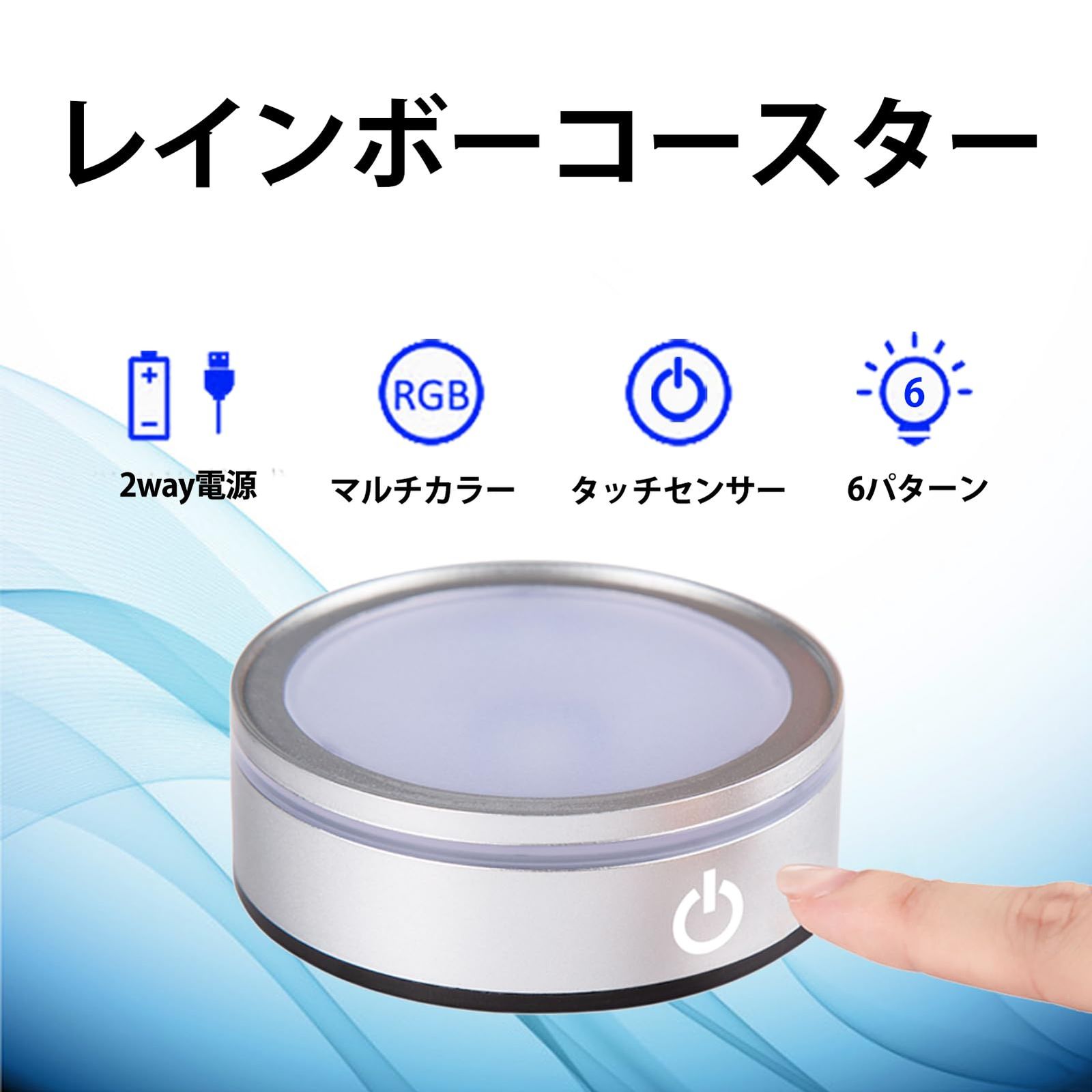 IFOLAINA LED レインボー コースター 円型 光る 台座 ライト ステージ ハーバリウム ライト 光る タッチセンサー式 台座 間接照明 オブジェ ディスプレイ ライト フィギュア スタンド ホーム オフィス 飾り 誕生日 プレゼント 贈り物