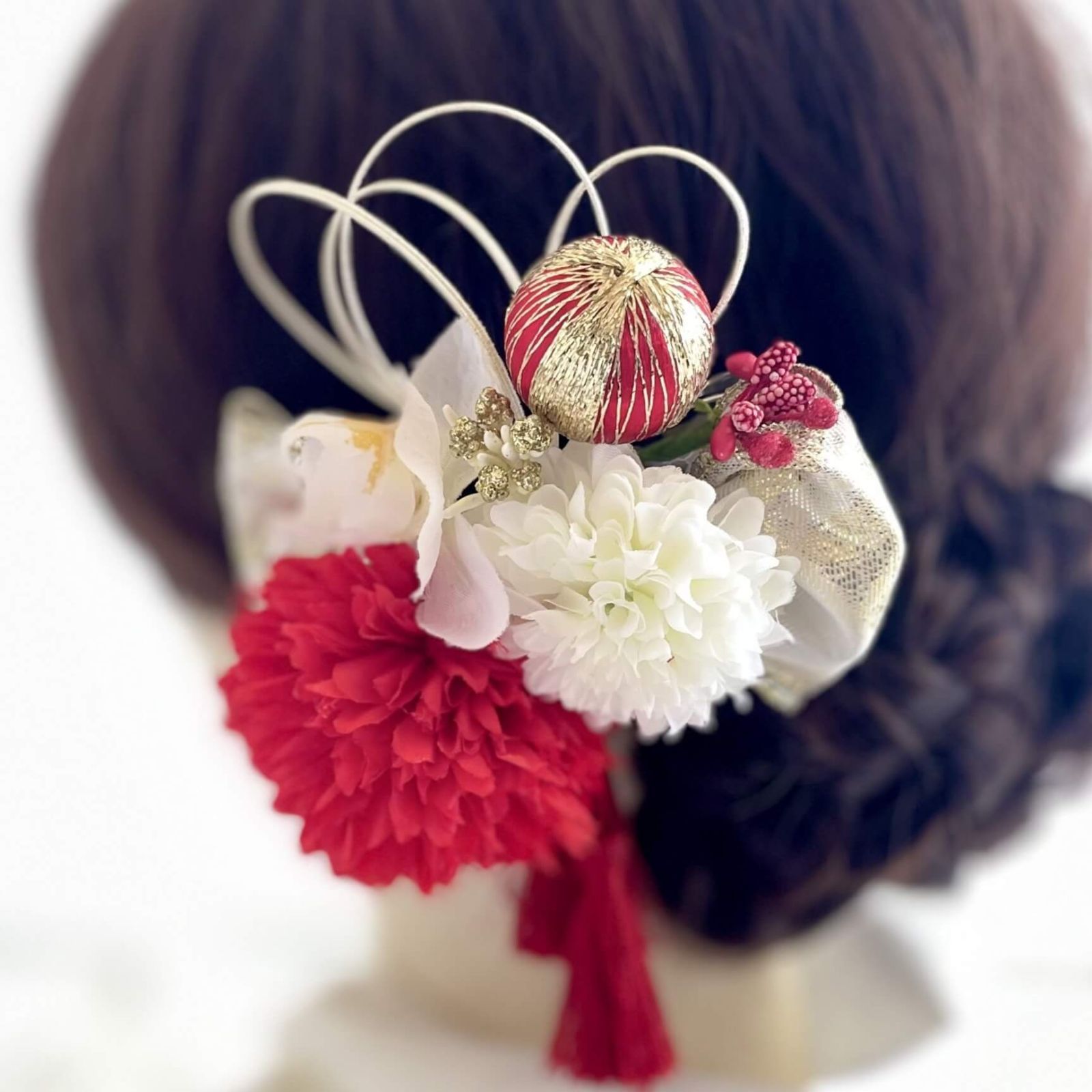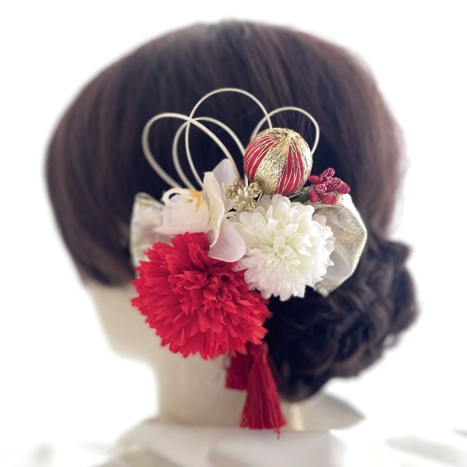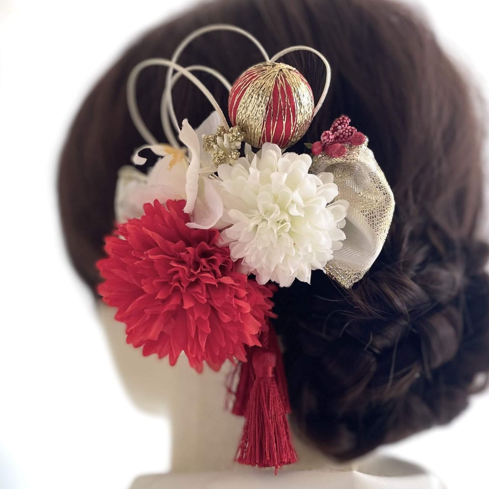 紅白のマムにゴールド&レンドの和玉、