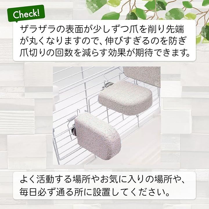 ざらざらした軽石素材が、乗るだけで爪をやさしく削り、またかじることで歯の伸びすぎ防止やストレス発散にも効果的。