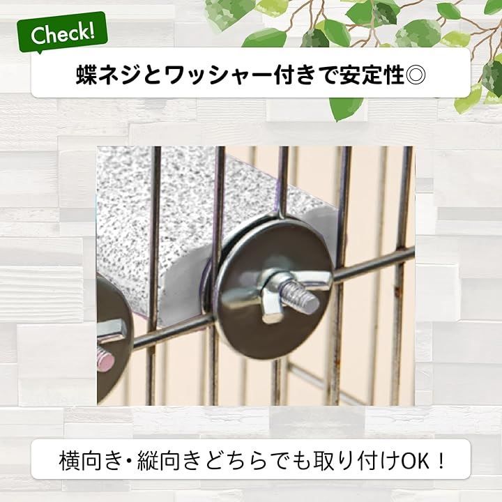 ケージの内側から取り付けるだけで、横向きにも縦向きにも設置可能です。