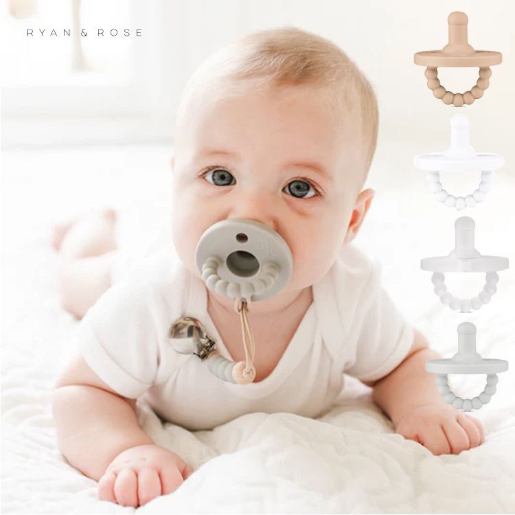 Ryan & Rose(ライアン&ローズ)Cutie PAT Round 0m+(Stage 1& 2) は、おしゃぶりと歯がための機能を兼ね備えた2-in-1デザイン。