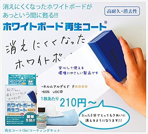消えにくくなったホワイトボードやコピーボードが、あっという間にきれいに!ホワイトボード再生コート(15ml)にコーティングに必要なクロスウエススポンジが入ったコーティングキット。
