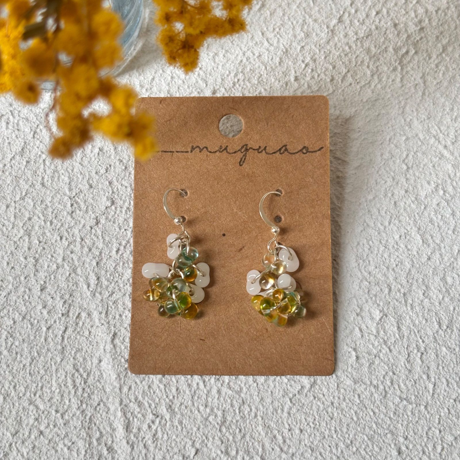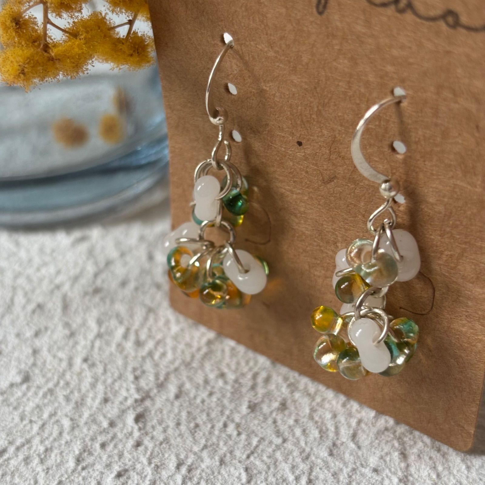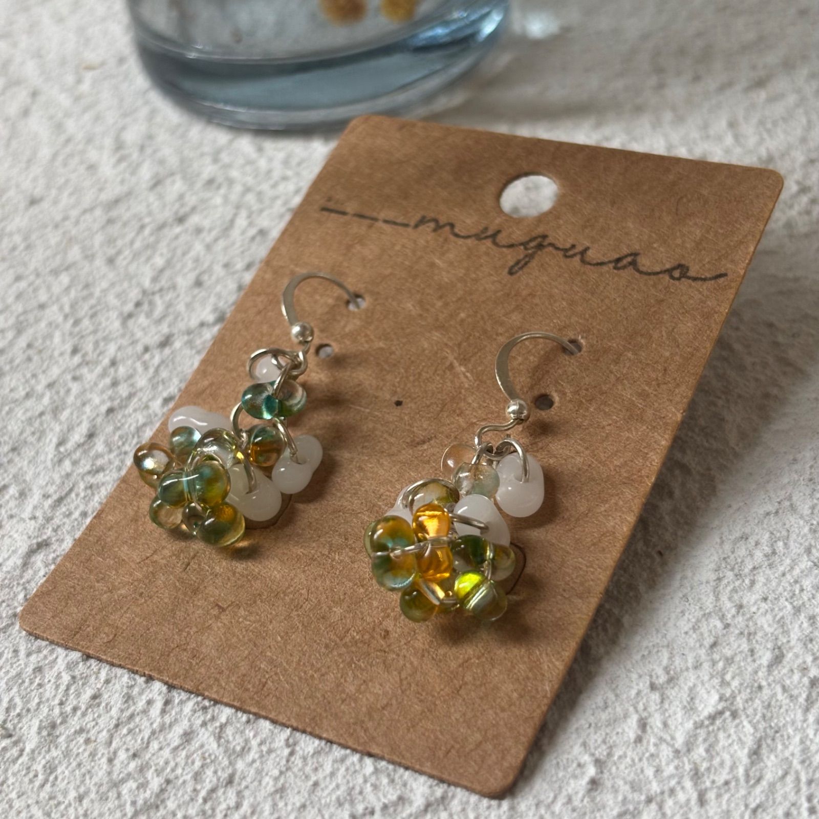 光を受けて優しくきらめくビーズが、耳元にさりげない彩りを添え、これからの暑い夏にも涼しげな印象を与えてくれます^ ^