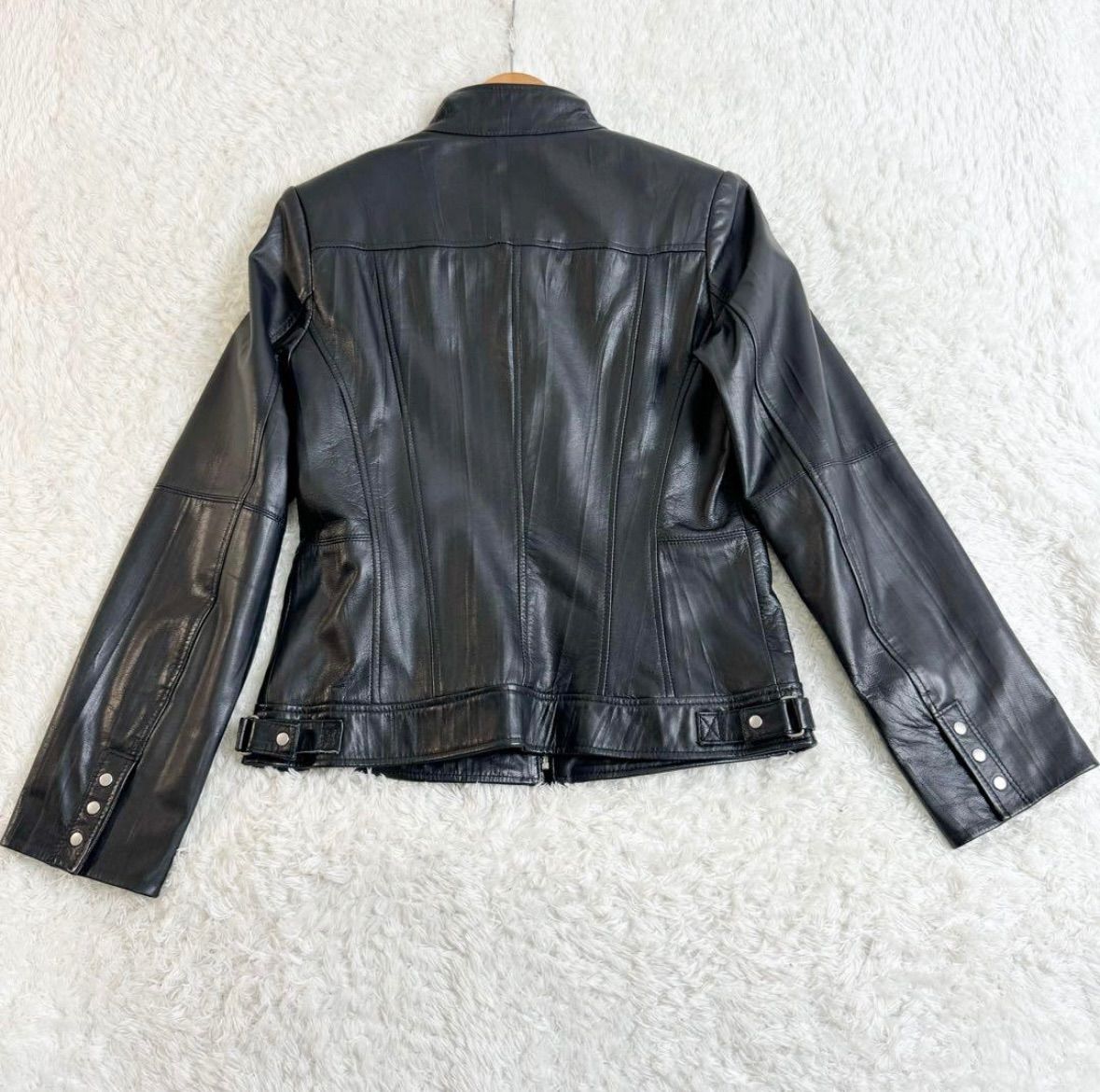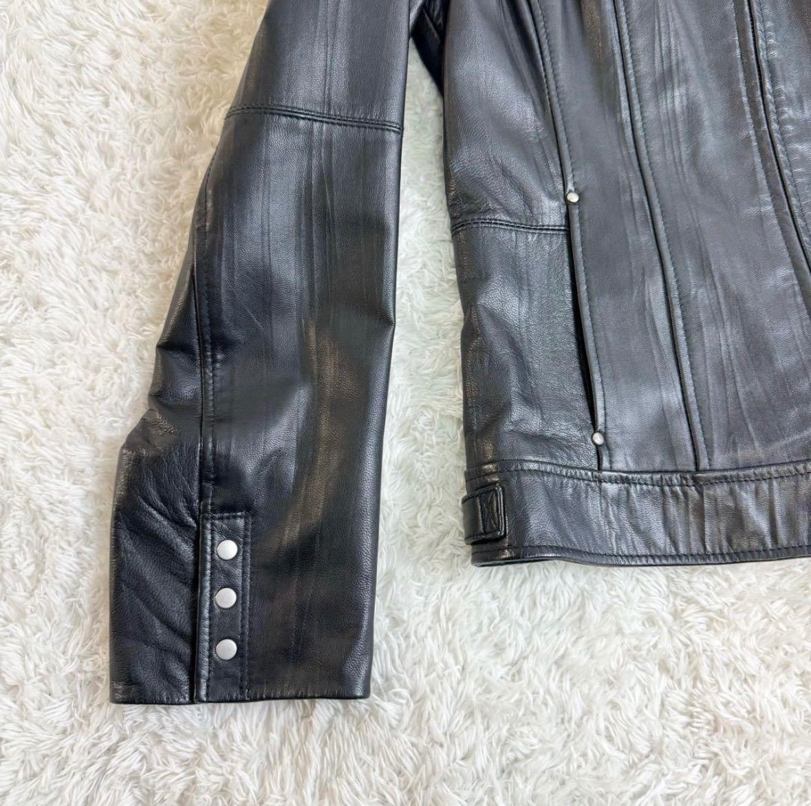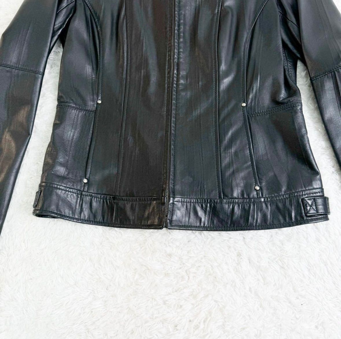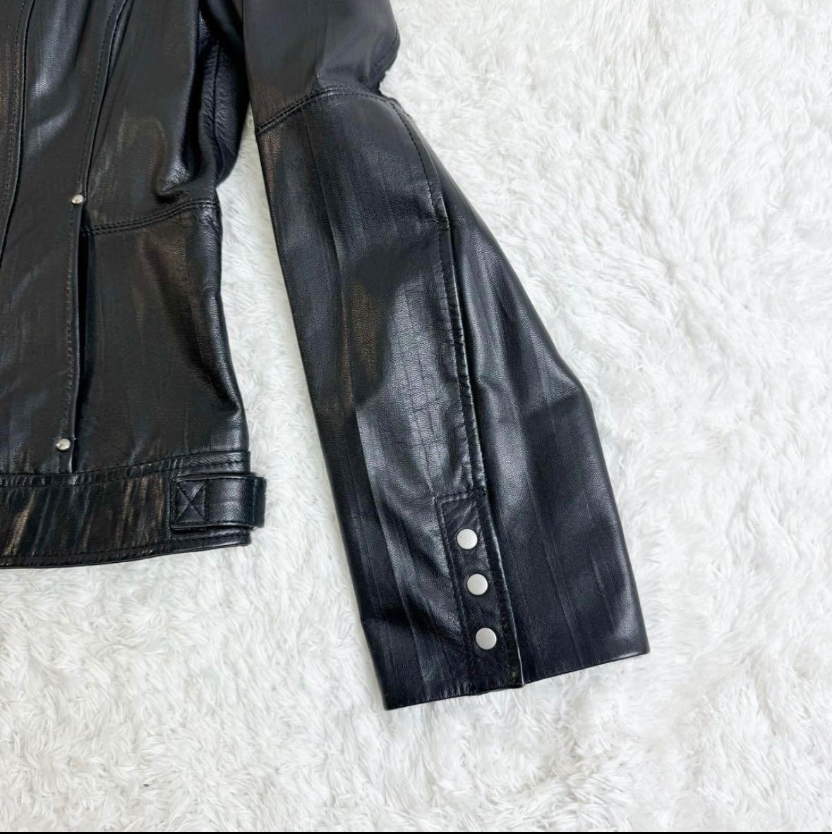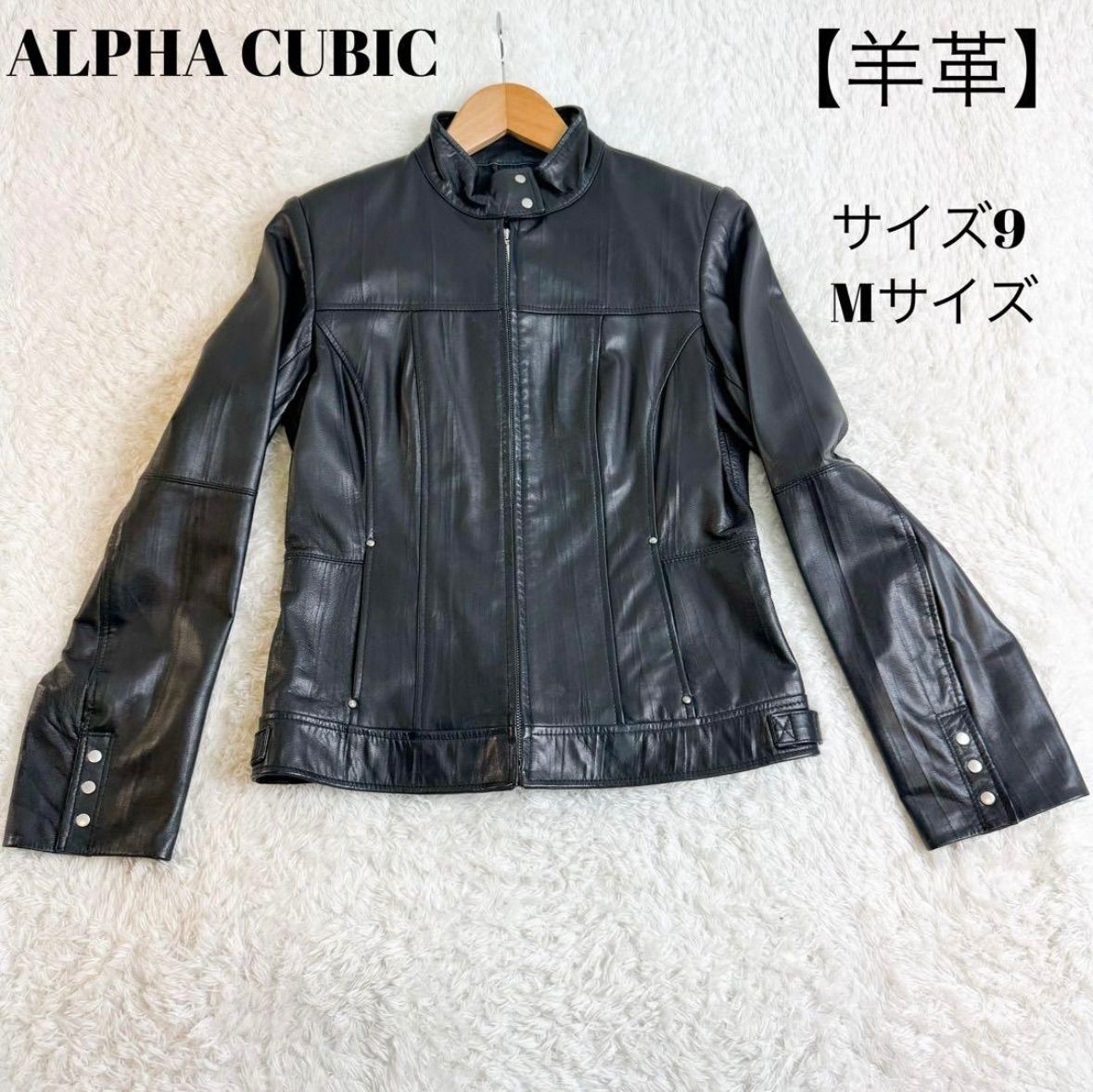 ALPHA CUBIC 羊革 シングルライダース ジャケット アルファキュービック ジップアップ ライダースジャケット ラムレザー 黒 ブラック サイズ9 M