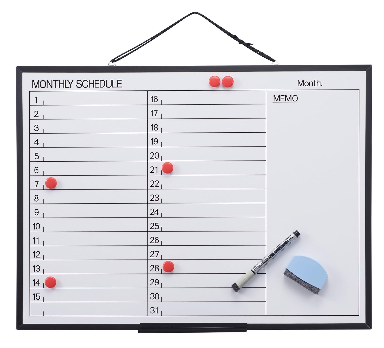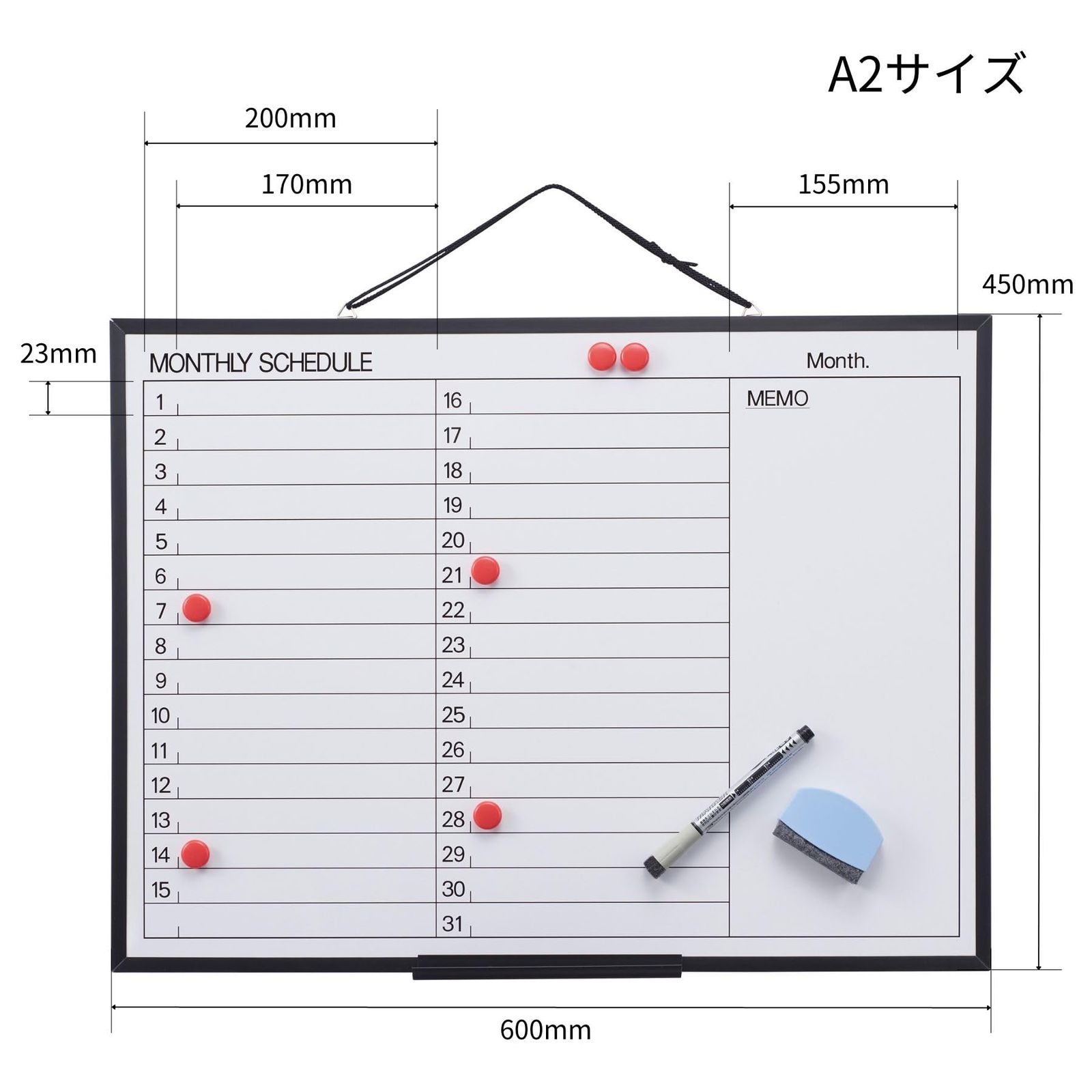 付属品:ボードマーカー(中綿式/黒インク)1本マグネット付イレーザー 1コ受け皿(幅18cm) 1コ休日表示マグネット(直径15mm)6コ