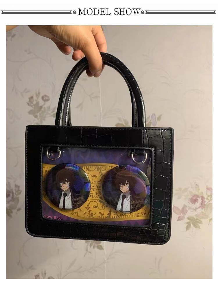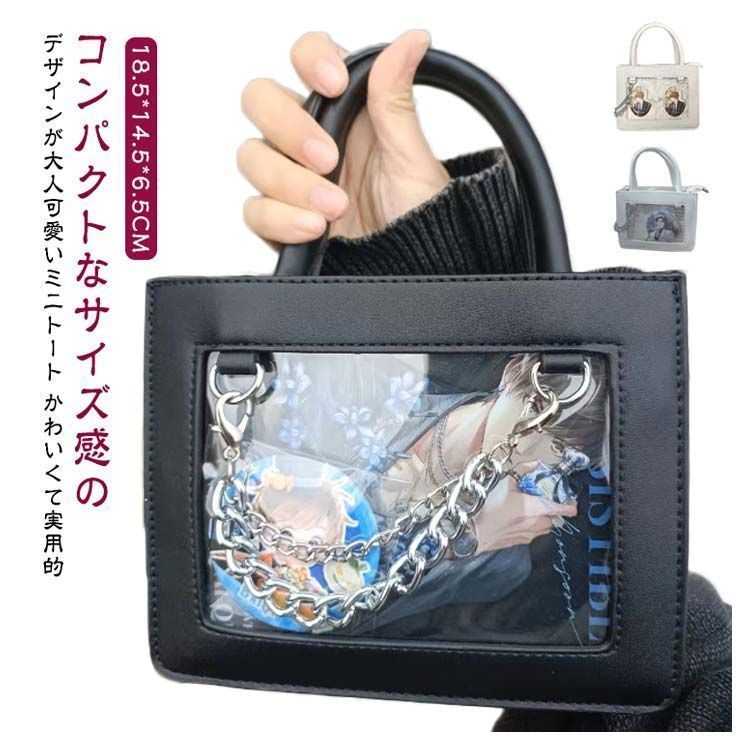ショルダー部分の金具部分にアクキーやラバストを付けることも可能です チェーンの装飾はバッグのファッションさをプラス 缶バッチがつけやすい。