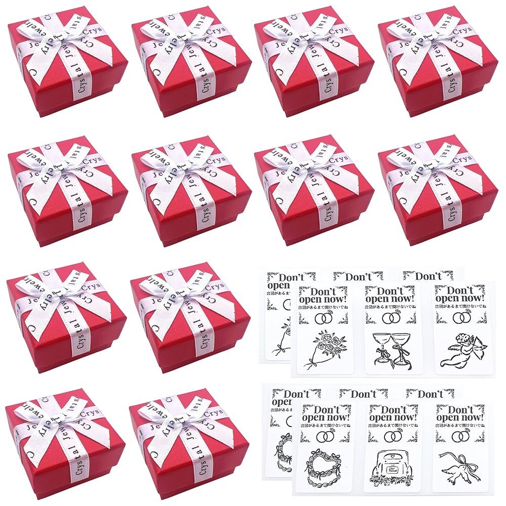 【商品仕様】BOXサイズ:約5cm角(高さ約3.5cm),BOX素材:紙,セット数:赤BOX×12個,シール12枚