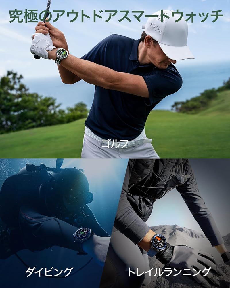「商品状態」11「商品情報 (新品の場合) 」デザイン、スポーツ、健康管理といったスマートウォッチに関する各機能を徹底的に追究したモデル『HUAWEI WATCH Ultimate』に、最上位ゴルフ機能を追加。究極のアウトドアスマートウォッチとして大自然にインスピレーションを得たグリーンカラー。チタニウムベルトのほか、ダイビングに適した水素化ニトリルゴムベルトに加えて、ゴルフなどのアウトドアアクティビティで活躍するコンポジットウーブンベルトを同梱します。