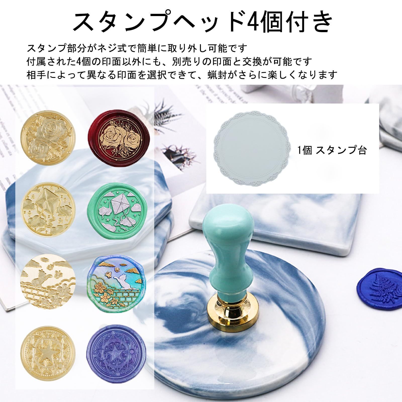 【使用簡単】手にやさしい木製グリップ設計で握りやすくて押しやすいです。スタンプ部分がネジ式で簡単に取り外し可能です。付属された4個の印面以外にも、別売りの印面と交換が可能です。相手によって異なる印面を選択できて、蝋封がさらに楽しくなります。