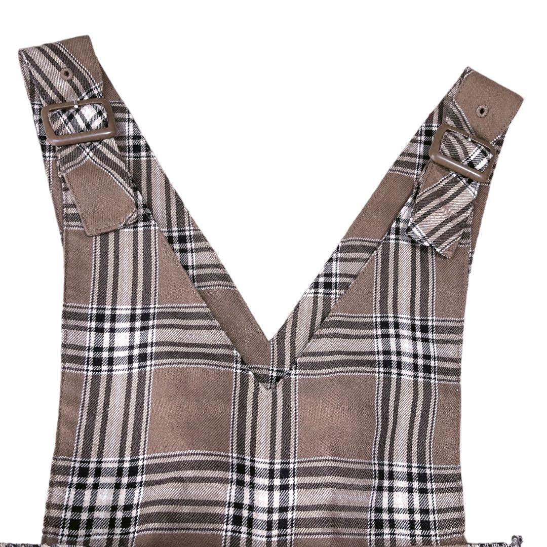 チェックが可愛いです、胸当ての部分はウエストでボタンで取り外しが可能です。