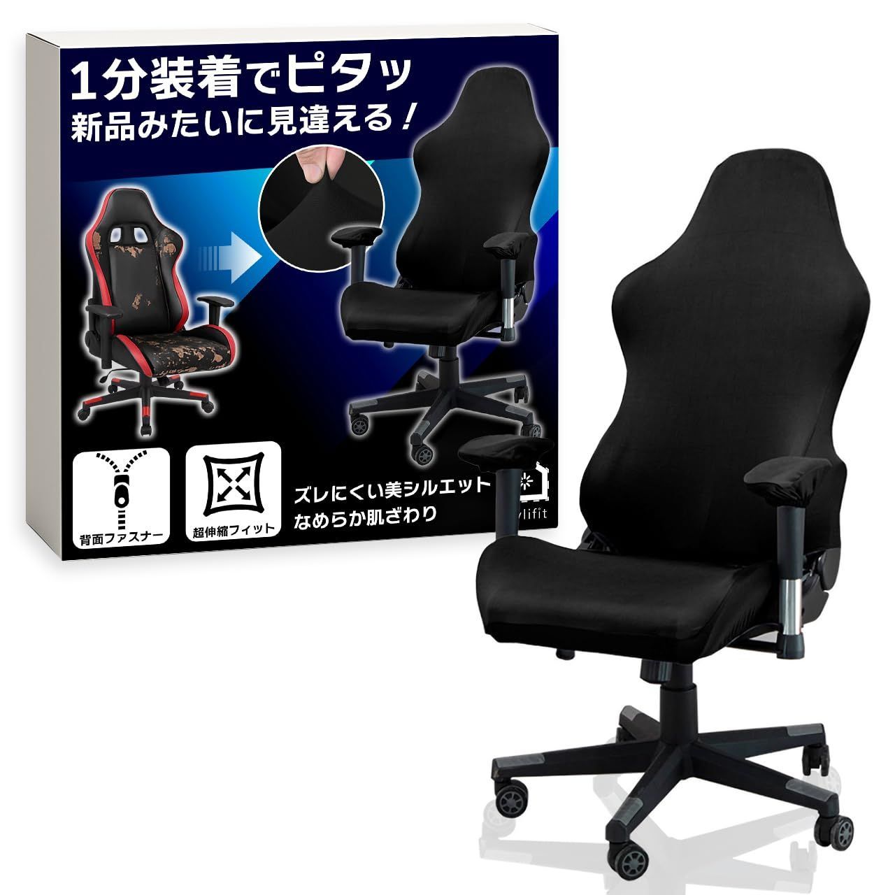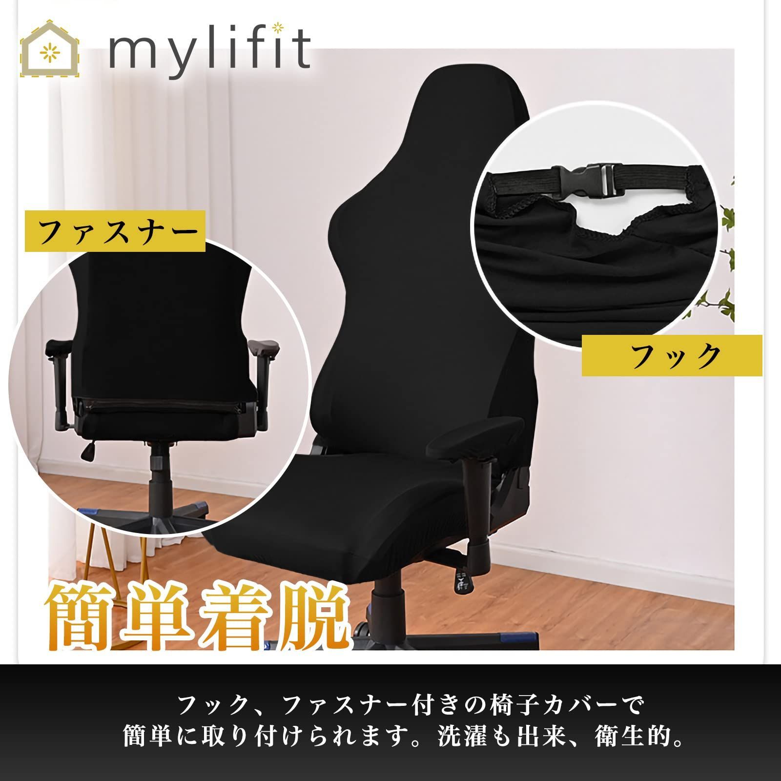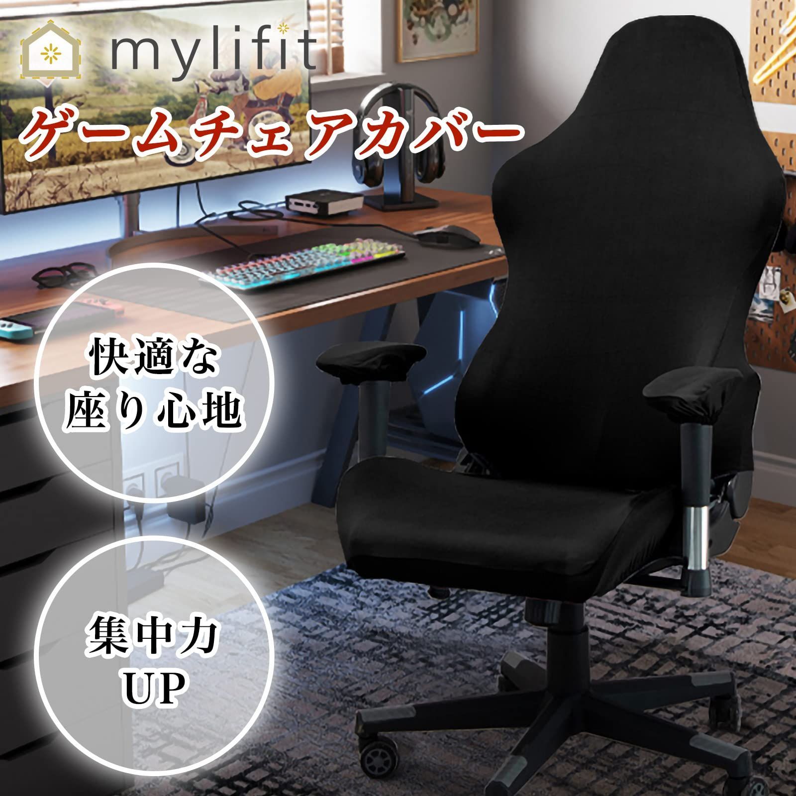 mylifit 【超伸びる素材 】 ゲーミングチェア カバー 椅子カバー リクライニング レーシング ゲーミングチェア用 洗える 4点セット なめらか肌触り 保護 伸縮性 冷感 アームレストカバー gaming chair cover オフィスチェアカバー アームレスト対応 フルカバー 取り付け説明動画 (ブラック)
