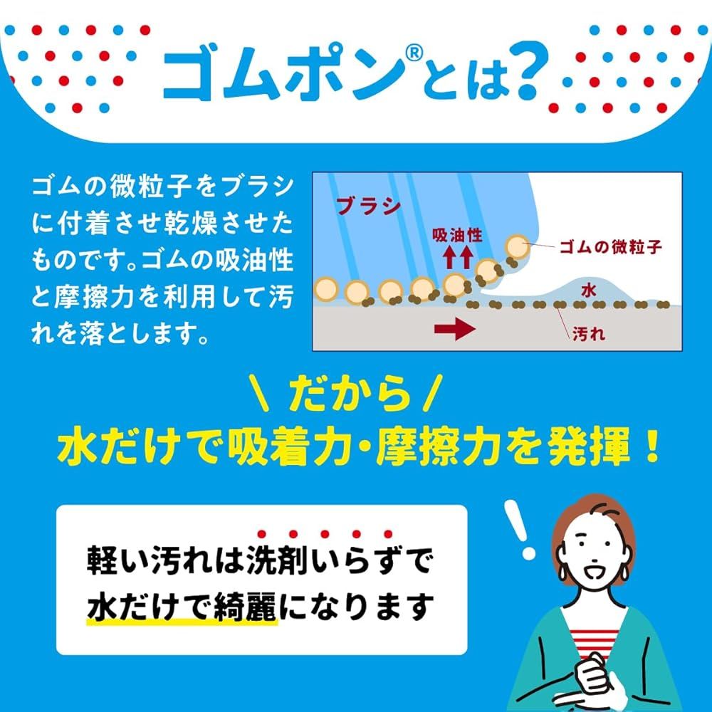 【ゴムポンつるつる姉妹品】ゴムポンは今までスポンジや、ブラシと違いゴムの微粒子を表面に吸着させた新しい商品になります。ゴムは吸油性と摩擦力があり、ゴムポンは、油汚れなどを吸着・摩擦力により、いままでにない力で落とす事を可能にしました。 「主な仕様」YouTubeなどメディアで話題のゴムポン バスブラシ