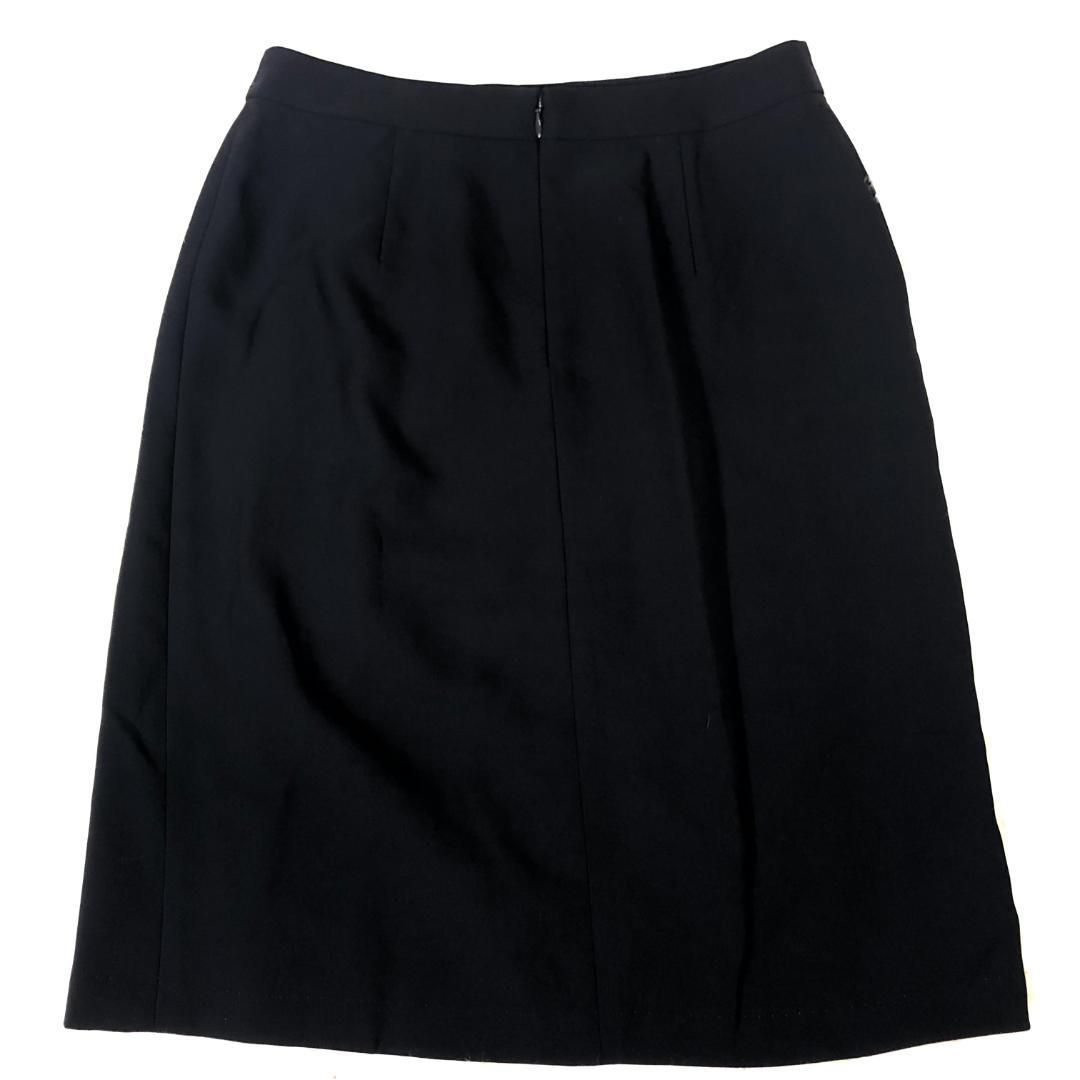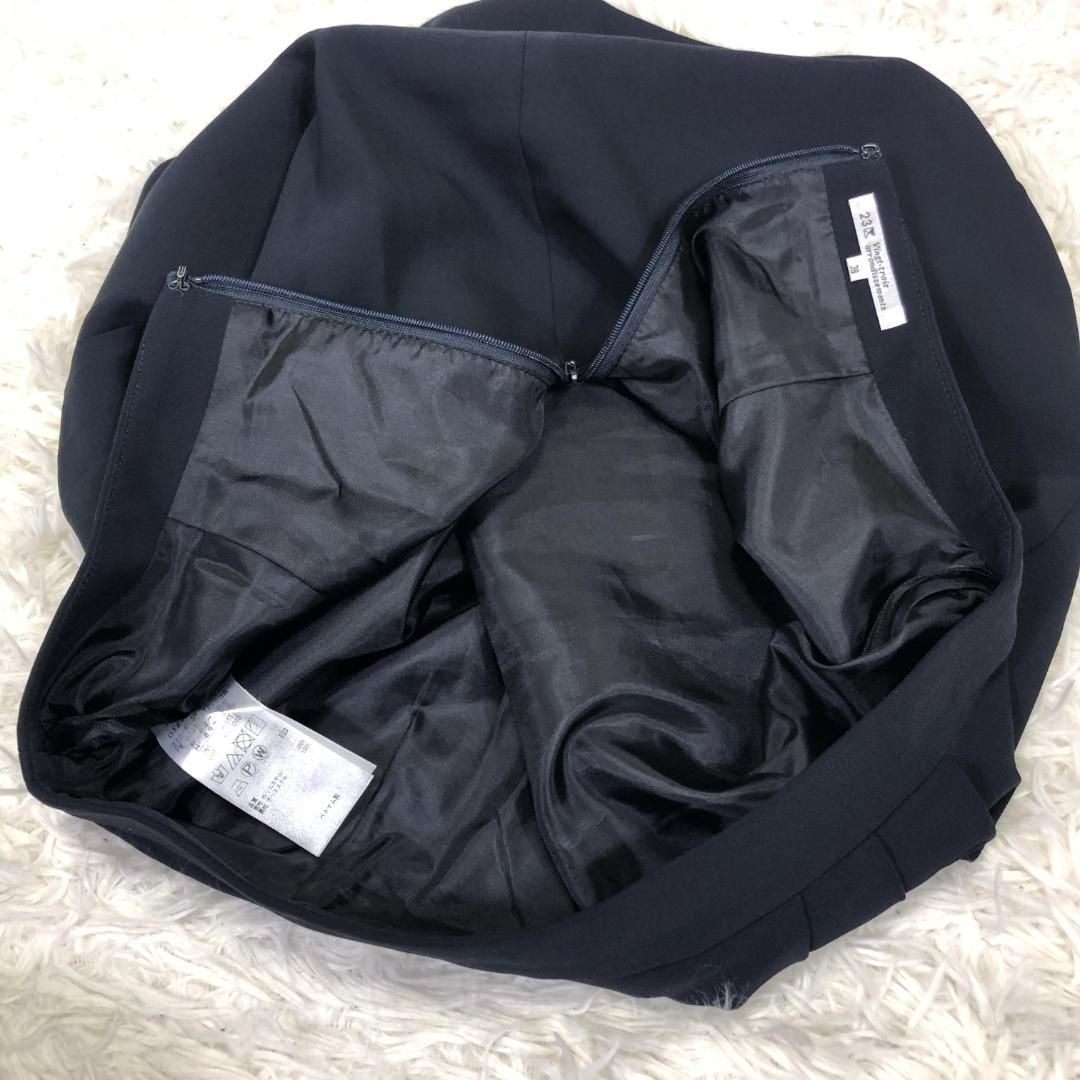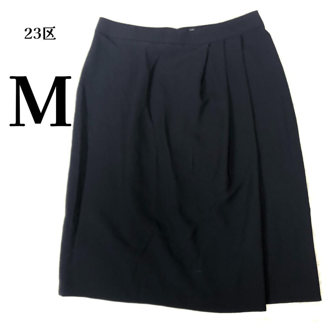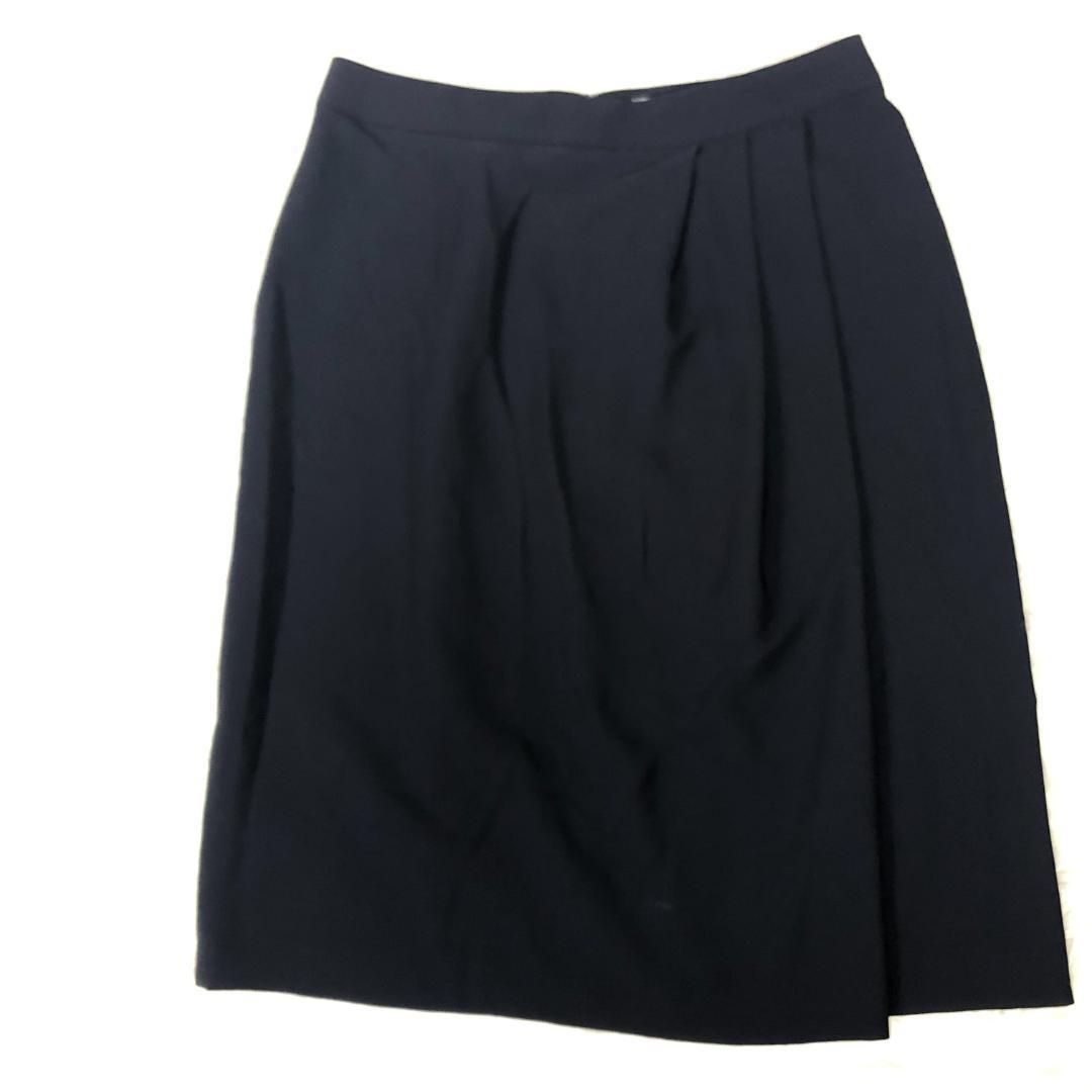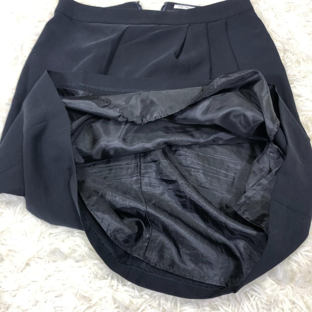 23区 着用時左前にタックが3本入った膝丈フレアースカートです。後ろ側ファスナー+ホック着脱。裏地付きです。身長160cm着用で膝が隠れる丈です。