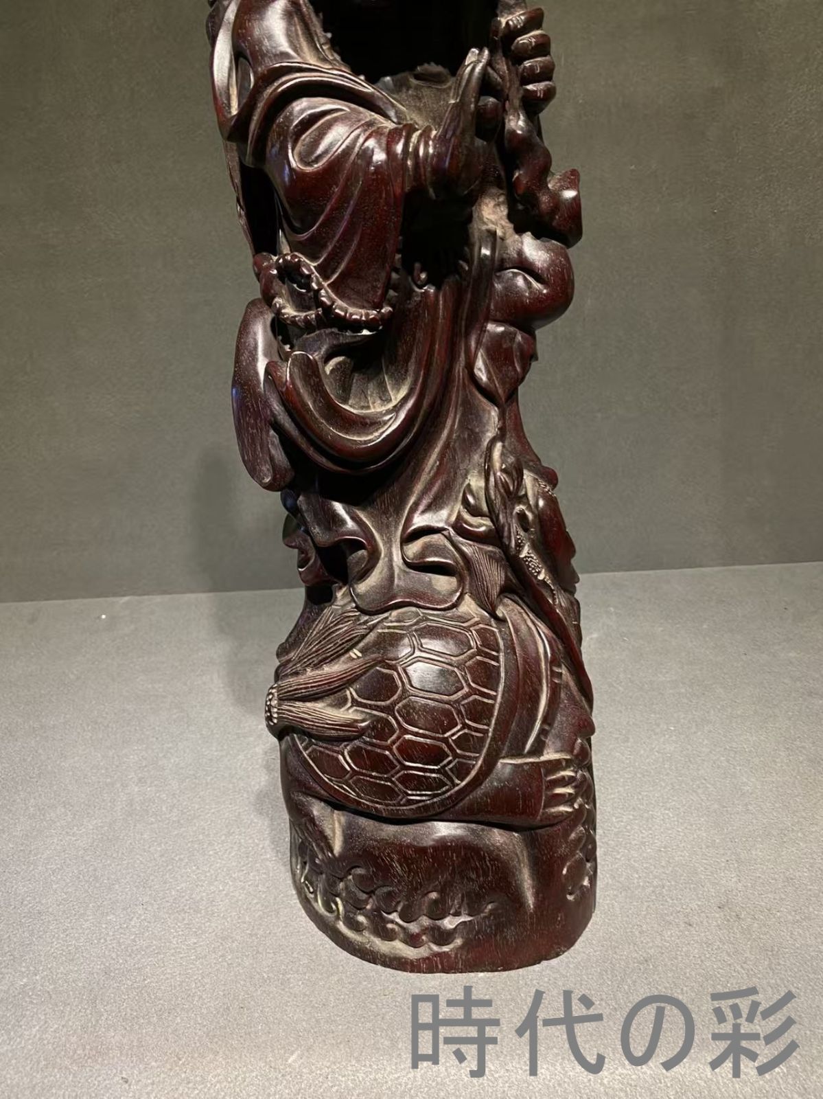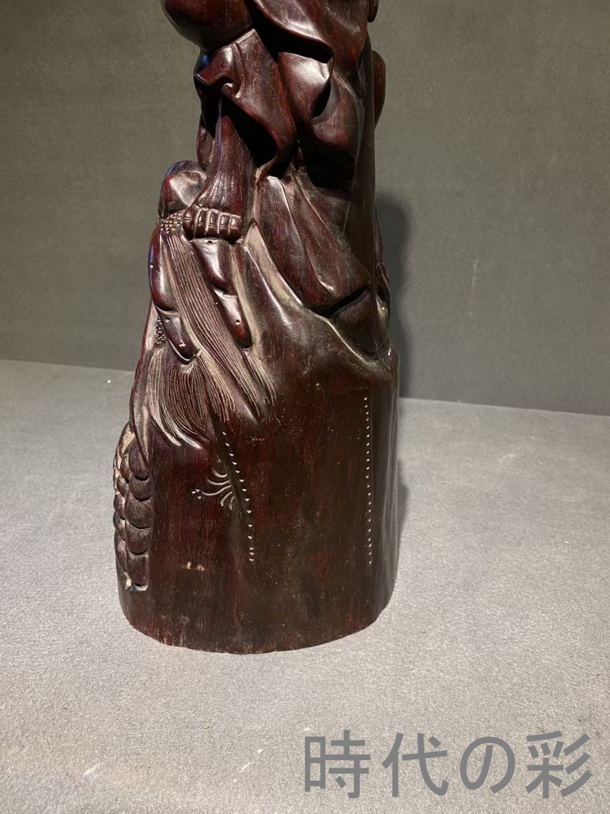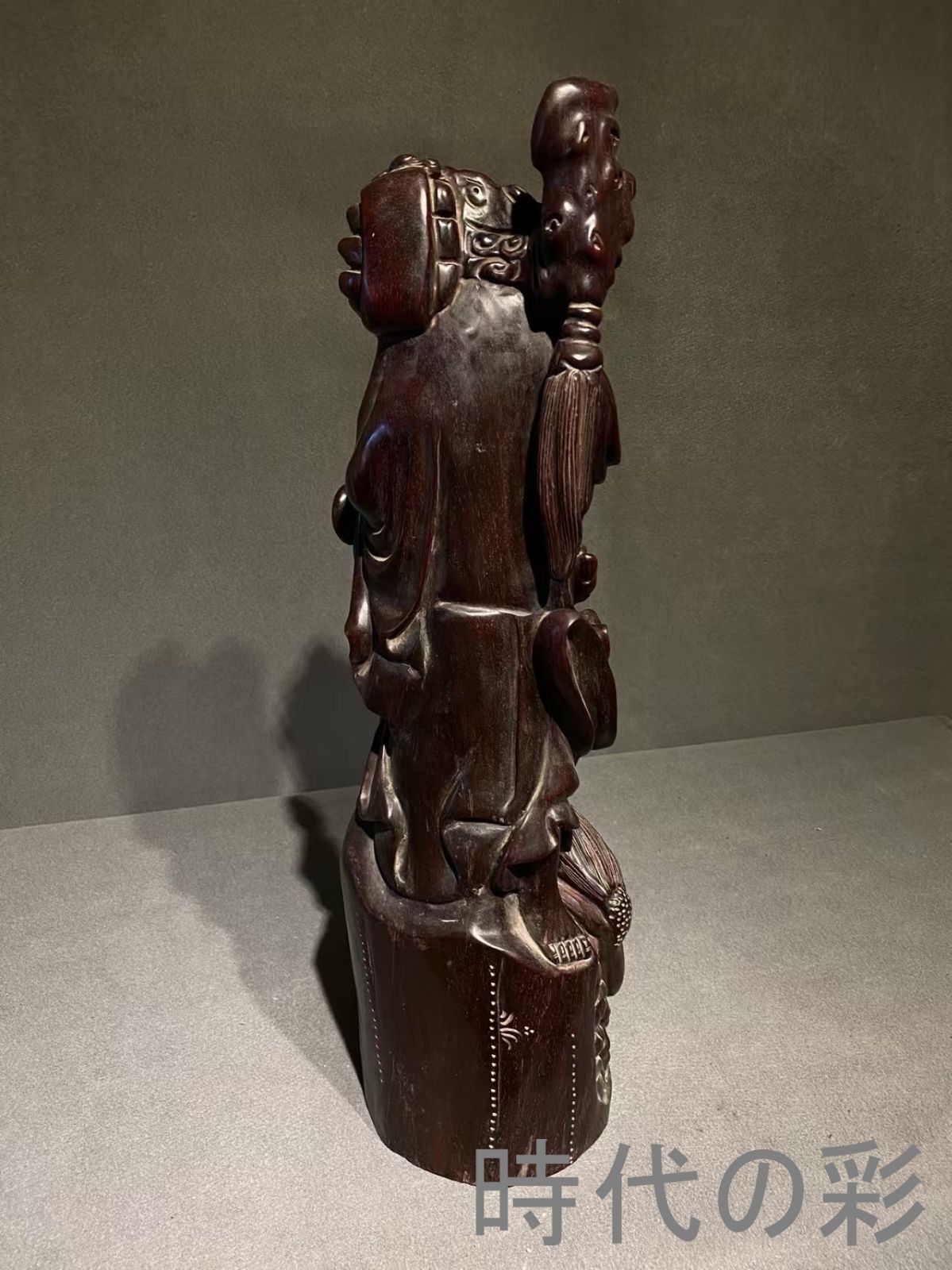 旧蔵の紫檀木製置物。達磨祖師を精緻に彫刻、包漿の味わい深い質感。コレクション・贈答にも最適。