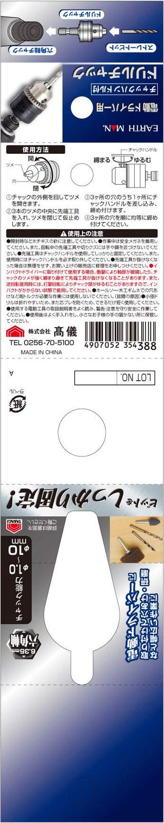 高儀(Takagi) EARTH MAN 電動ドライバー用 ドリルチャック チャックハンドル付 TKG-1311415