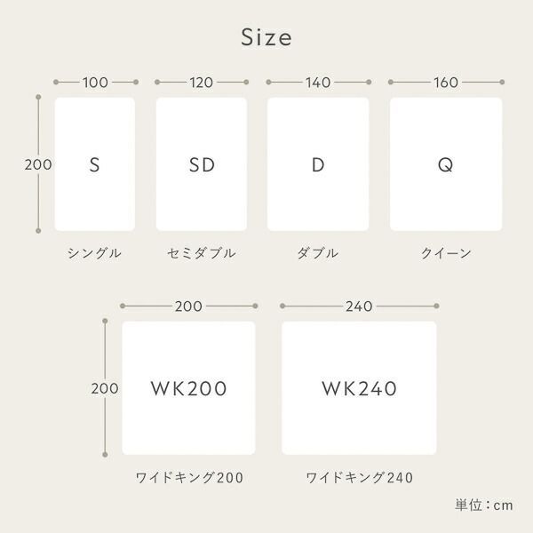 ※ダブルのホワイト、セミダブル・ダブル・ワイドキング200・ワイドキング240のチャコールグレー、ワイドキング200・ワイドキング240のライトグレー、ワイドキング200・ワイドキング240のグレージュは完売しました。再入荷の予定はございませんので、あらかじめご了承ください。