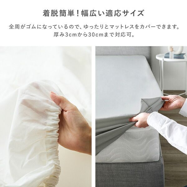 対応可能なマットレスの厚み:3cmから30cmまで(全サイズ共通)
