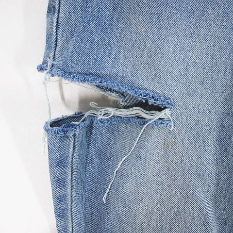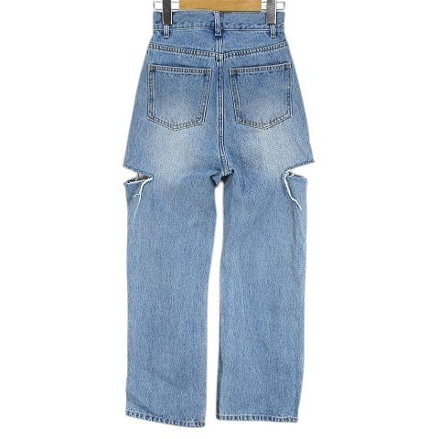 【商品名】ドノバン Donoban ロング丈 デニムパンツ ジーンズ XS 青系 ライトブルー ジップフライ ダメージ 加工