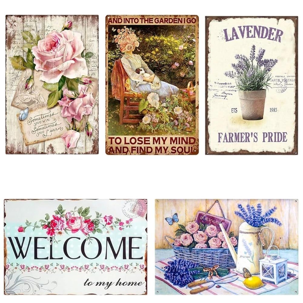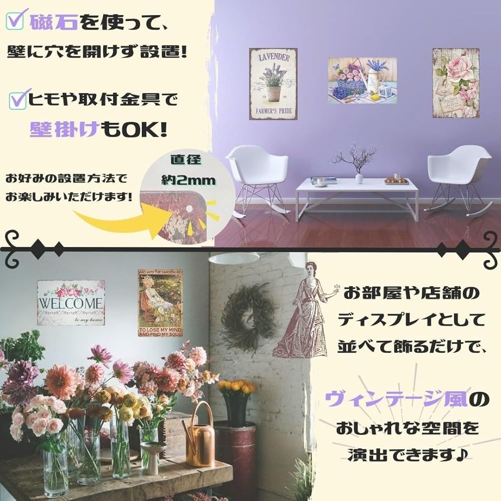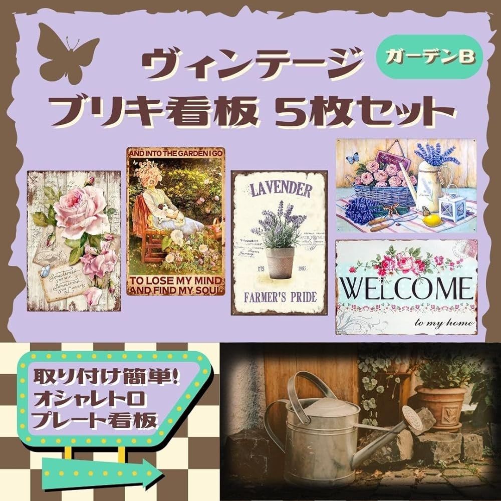 ブリキ看板 レトロ アメリカン雑貨 インテリア ビンテージ 壁掛け MSW2577ガーデンB(5枚)