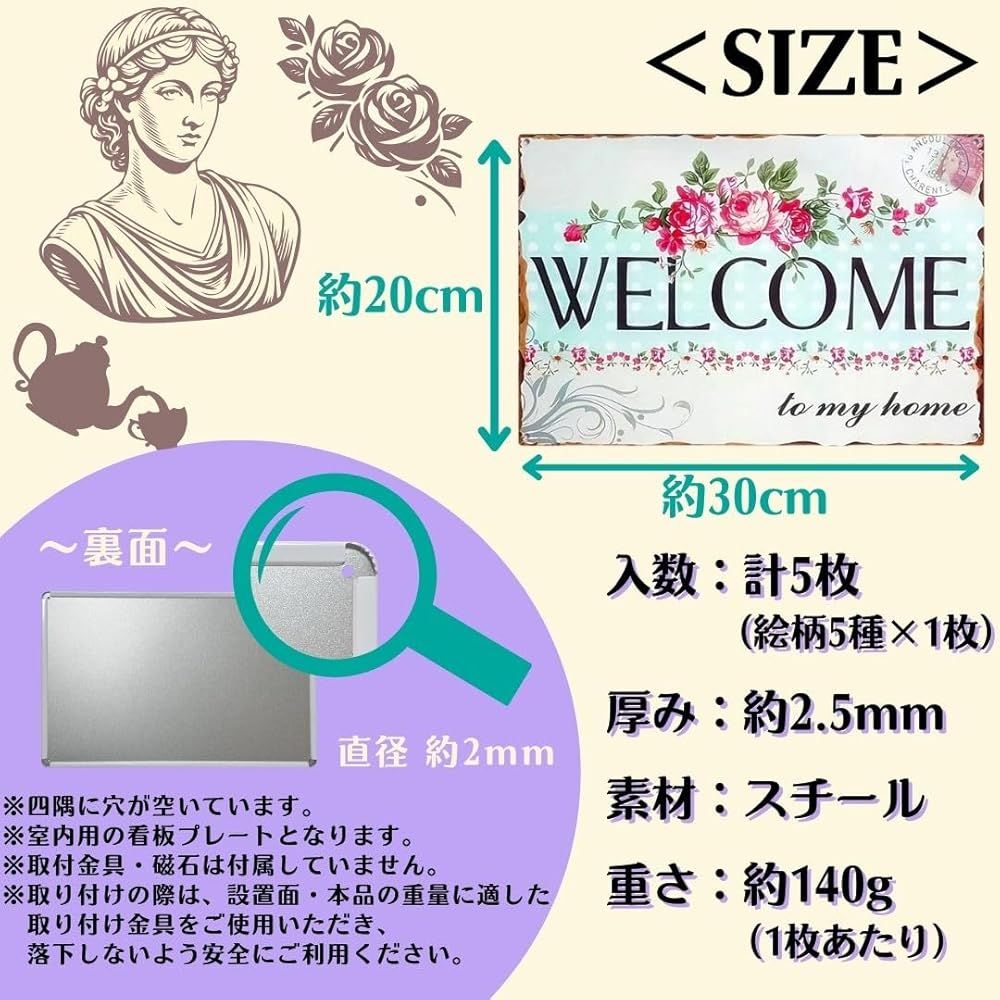 【商品仕様】サイズ:約20×30cm,厚み:約2.5mm,1枚あたりの重さ:約140g,セット枚数:5枚,素材:スチール