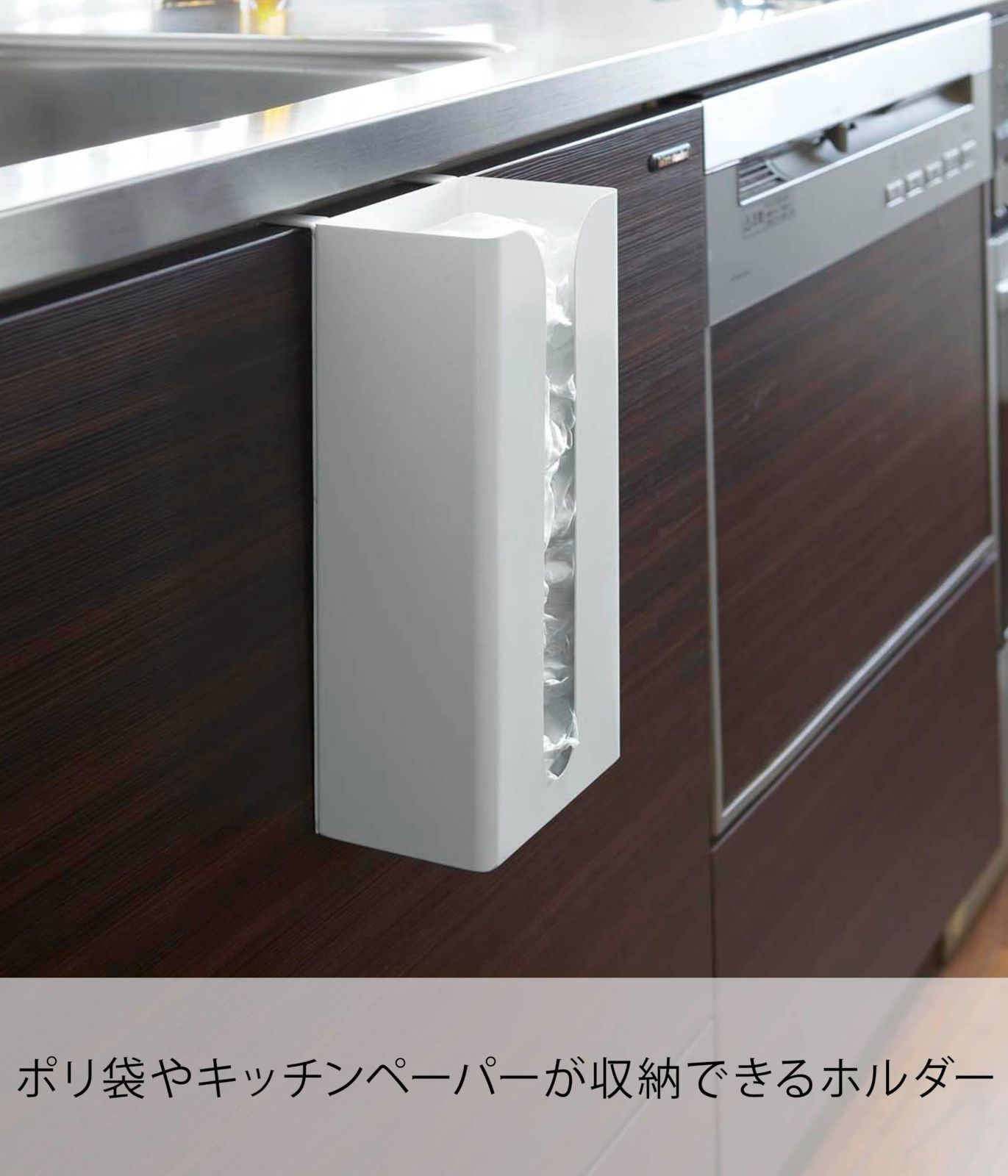 山崎実業(Yamazaki) ポリ袋 & キッチンペーパーホルダー ホワイト 約W13×D11.5×H26cm プレート Plate 戸棚下収納 キッチン収納 7982