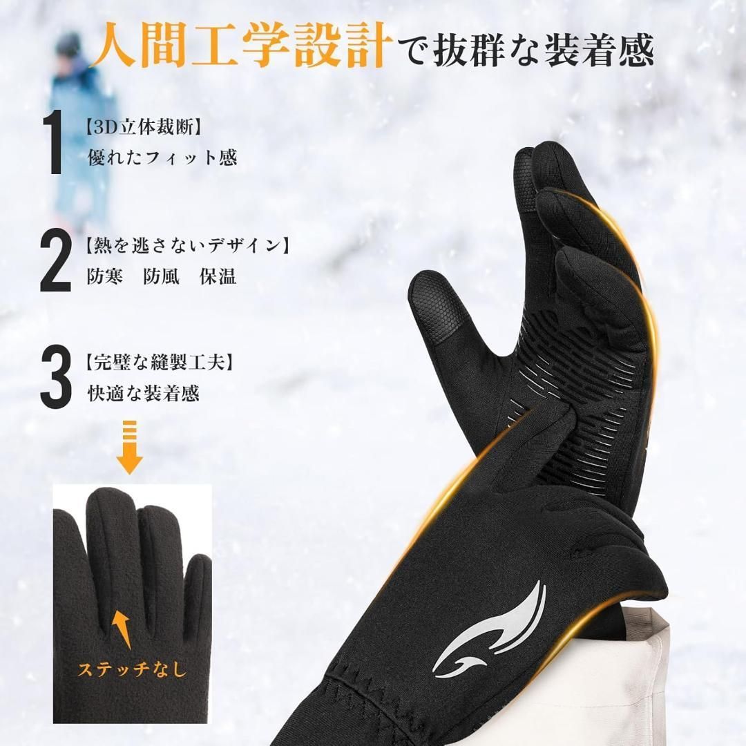 【滑り止め・反射ロゴ】手袋 メンズの手のひらと指部分に耐摩耗性とグリップ力を効果向上させるPU滑り止め素材を採用します。 物を掴む際にしっかりホールドでき、アウトドア、スポーツから日常まで、冬や春先のハイキング、トレッキング、サイクリングなどにいいかけ心地を実現しています。手袋 防寒の手の甲に反射ロゴ付き、夜間走行の安全性を高めます。