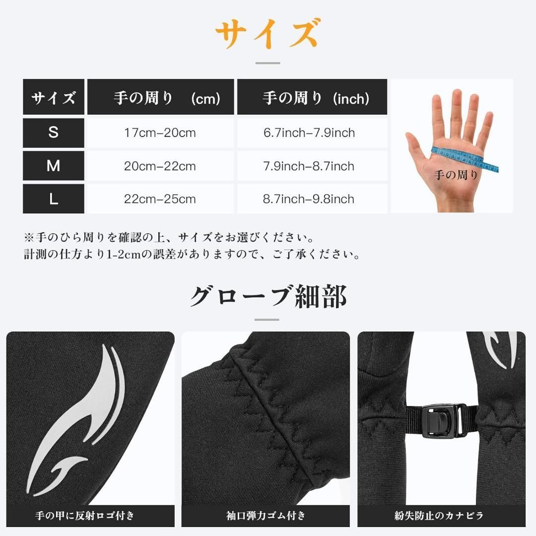 【人間工学デザイン】人間工学に基づいた3D立体裁断にデザインされ、あなたの手にフィットします。柔軟性の高いフリース生地採用し、手袋裏側に完璧な縫製を工夫して、手の痛みなどがしない。防寒、保温、通気、快適すべてを兼ね備えたスポーツ手袋です。 【サイズ】 M:手のひら周り20-22cm ※伸縮性生地ですので、若干の個体差(1cm〜2cm)がある場合がございます。あらかじめご了承ください。