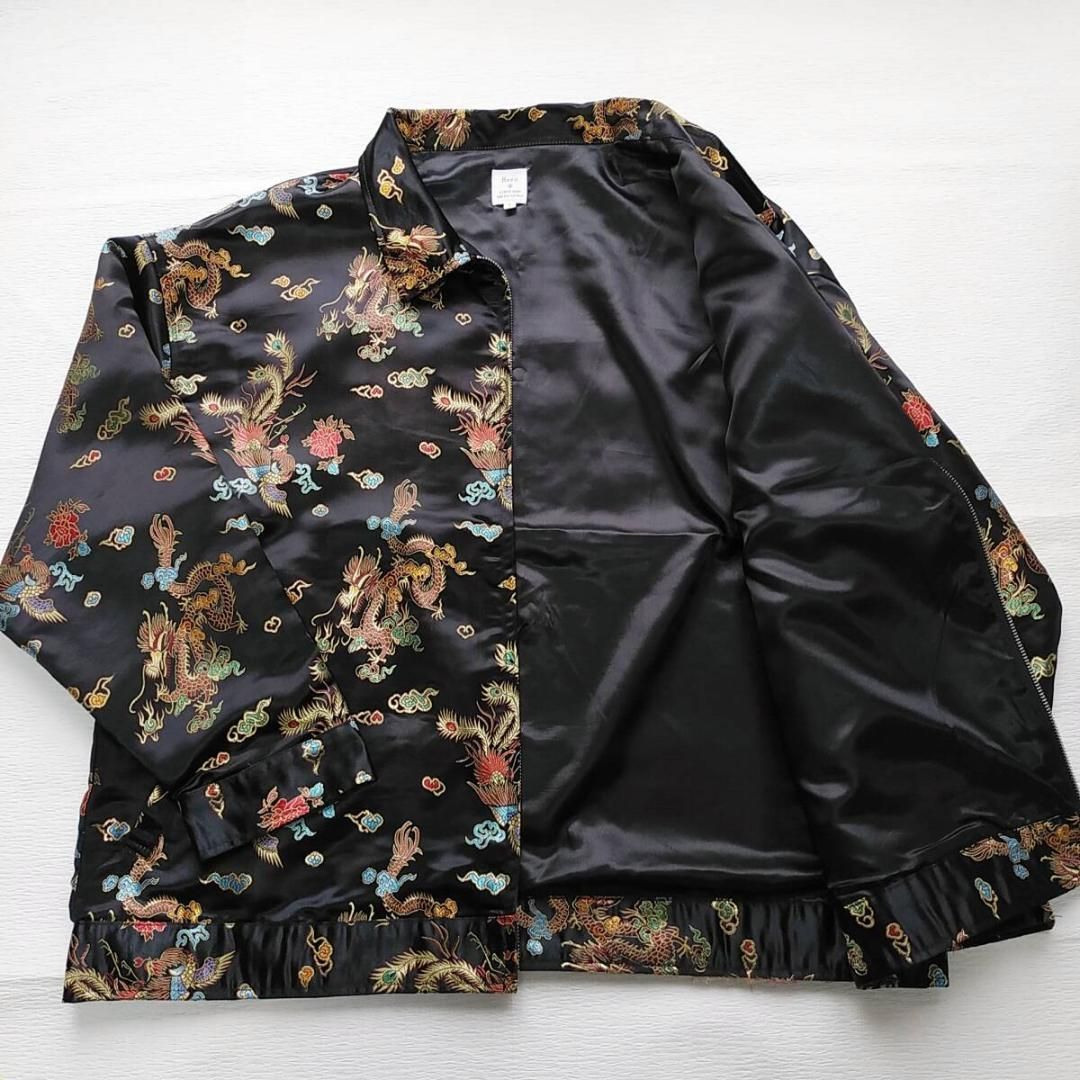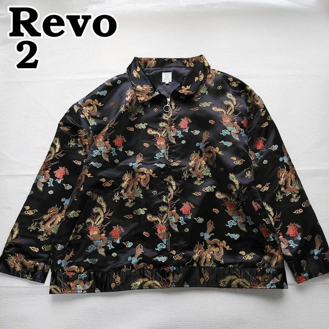 Revo レヴォ サテン 和柄 チャイナ ジャケット 龍 ドラゴン刺繍 メンズ2 M スイングトップ ブルゾン 241022-04