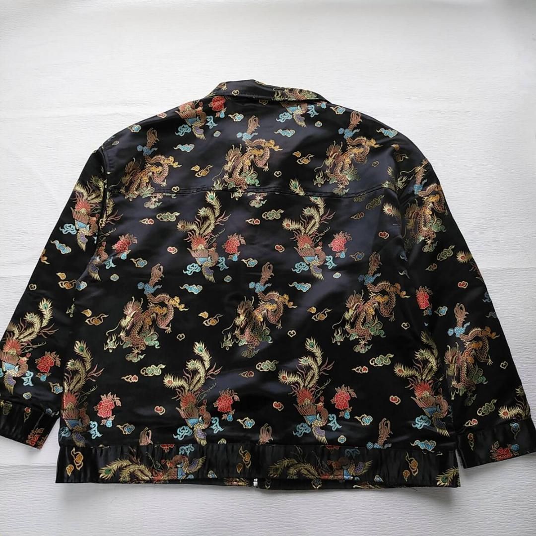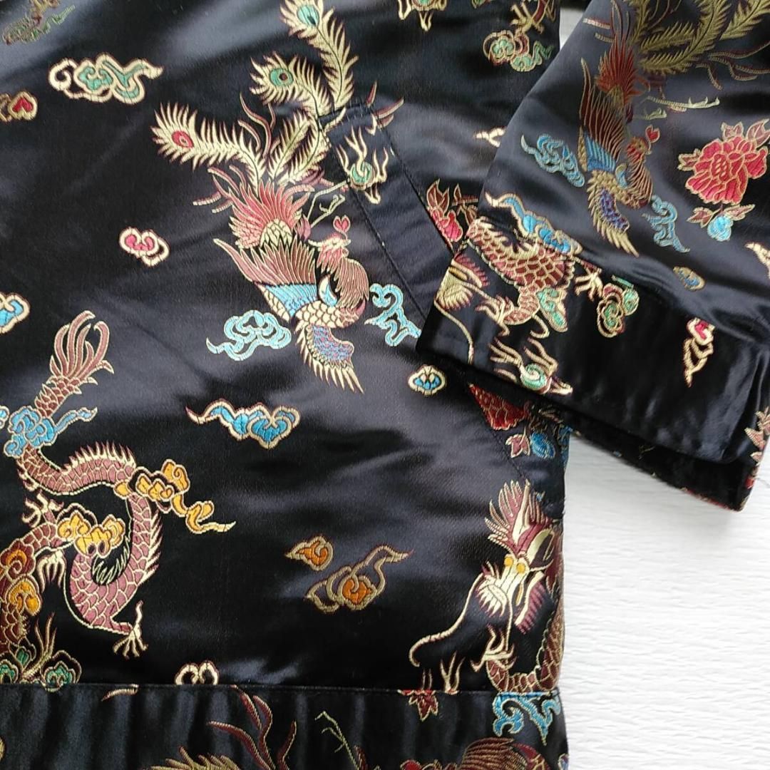 滑らかなサテンの地に、龍と鳳凰が舞う、圧巻のオリエンタル刺繍が施されたジャケット。