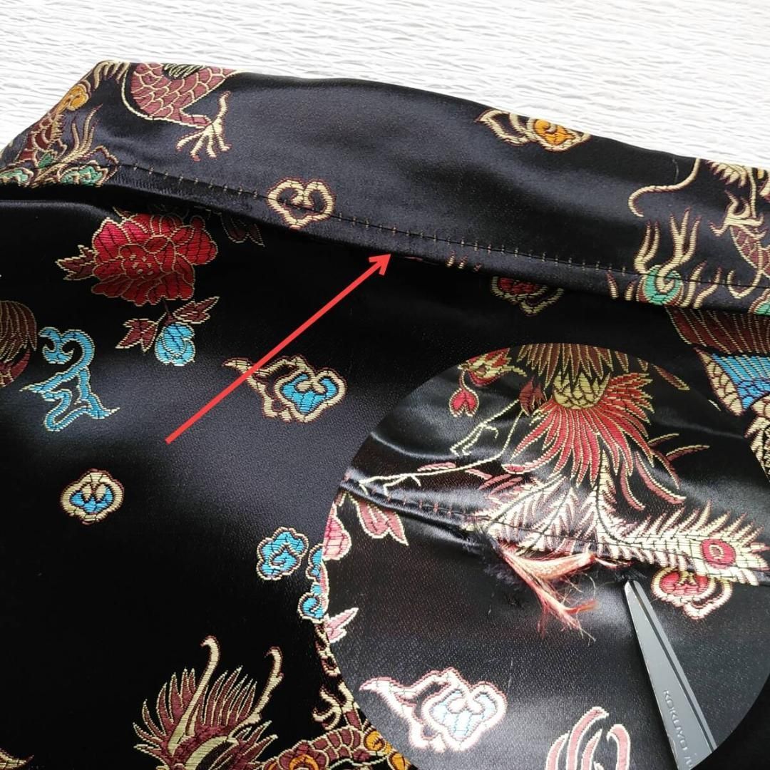 ・背面の襟裏に、着用時には見えない部分ですが、縫製のほつれがございます。
