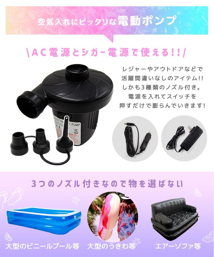 電動ポンプは家庭用AC100Vまたは車のシガーソケットDC12Vの電源で使用することができます!