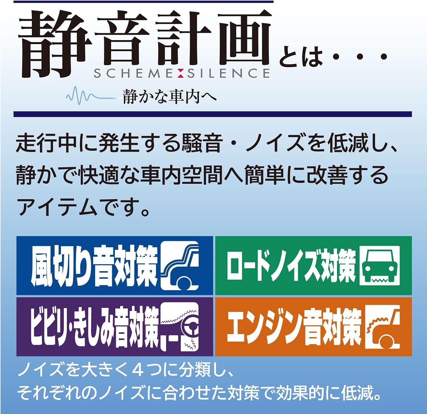 静音計画は、ノイズが発生する様々なメカニズムを解析しその代表的な「風切り音」「ロードノイズ」「ビビリ・きしみ音」「エンジン音」などを効果的に抑制する静音アイテムを幅広くラインナップ。