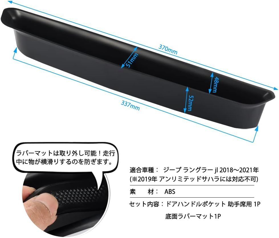 GIMUYA ジープ ラングラー jl 専用 ドアハンドルポケット グローブボックス Jeep Wrangler 収納 小物入れ 内装パーツ 改造 ポケット インテリア アクセサリー カスタムパーツ 助手席用 1P ( jl/2018~現行)