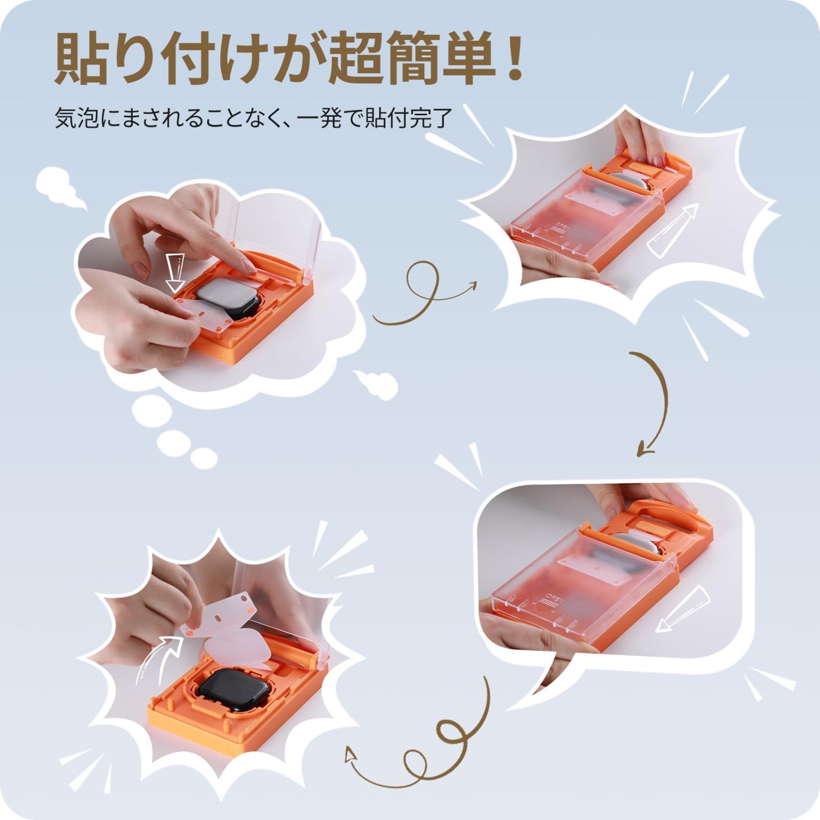 【貼付け超簡単】人気のNIMASOがついに、初めての方でも簡単に貼り付けることができるガイド枠を発売いたしました!これで貼付けはさらに簡単に!watchをガイド枠に置いて、フィルムを説明書通りに貼るだけで気泡やズレの心配はありません。貼付けの動画もご用意しておりますので、貼付け前にご確認いただくことをおすすめいたします。