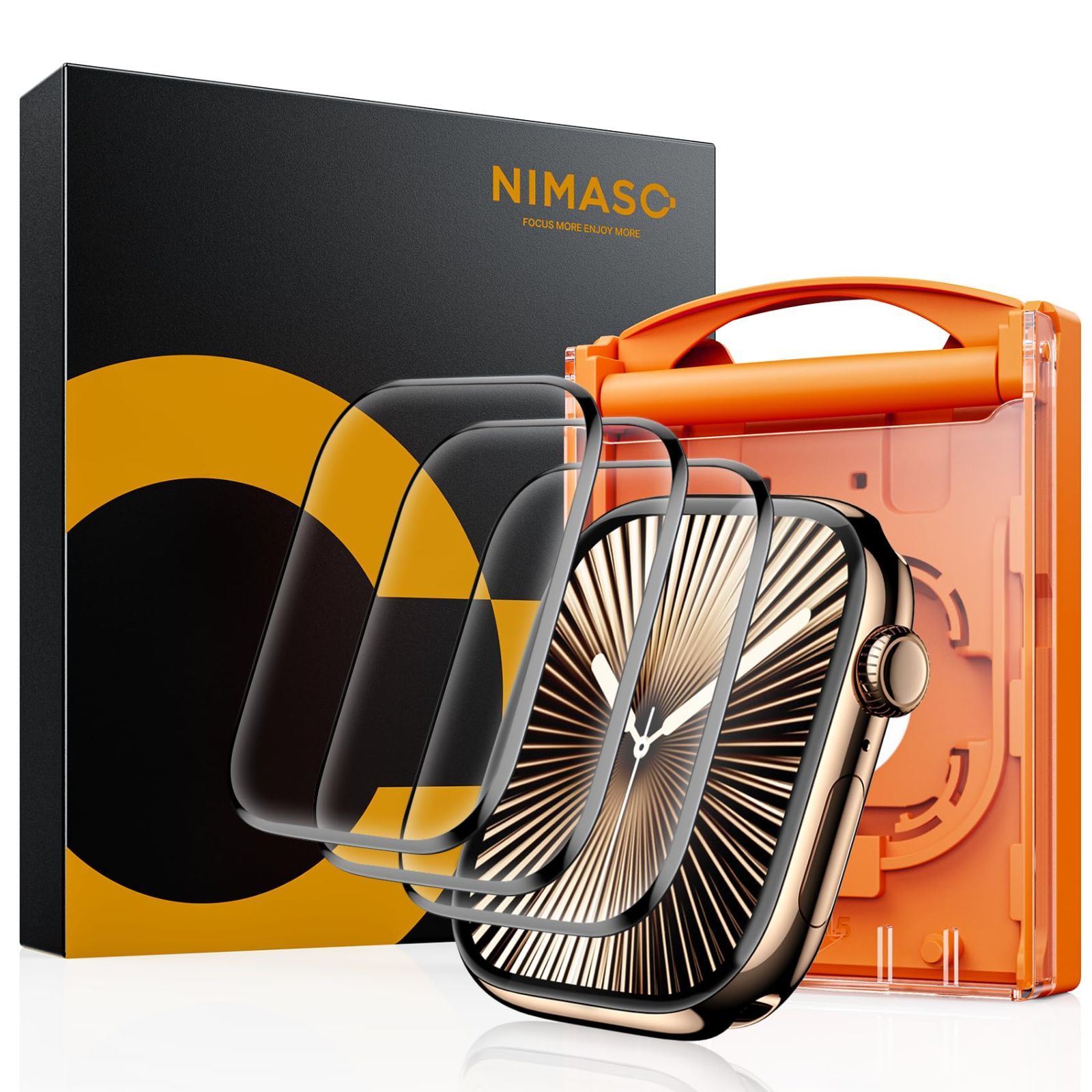 【3枚組】 NIMASO フィルム ガイド枠付き Apple Watch series 11(2025)/ 10(2024)46mm 対応 アップルウォッチ 11 / 10 用 保護フィルム 自動除塵 黒縁全面保護 高透過率 気泡防止 指紋防止 傷防止 貼り付け簡単 DSW24I1533