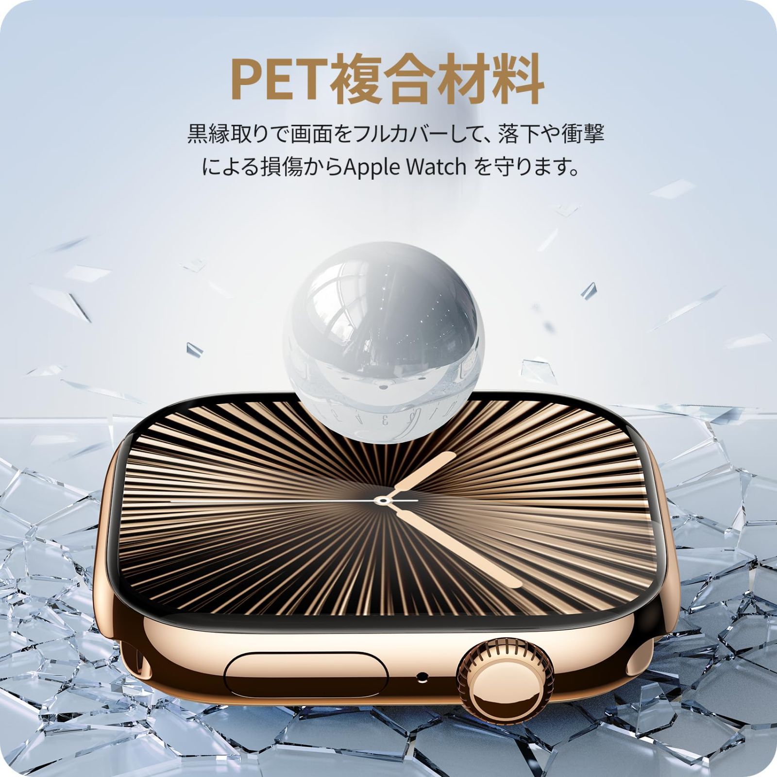 【黒縁全面保護・全新複合材料】新世代のPET複合材料、アップグレードされたカーボンファイバーソフトエッジを採用しており高い柔軟性があります。破損しやすいエッジのトラブルとはおさらば。曲線に沿って黒縁取りされていることでアップルウォッチの画面全体をカバーでき、落下や衝撃による損傷からwatchを守ります。曲線部分も含め全画面を覆うことで、どんな角度から落ちてもフチ割れの心配はありません。 ご注意:全面保護のため、一部のケースと干渉がある場合がありますので、サイズに合わせて慎重にお買い求めください。
