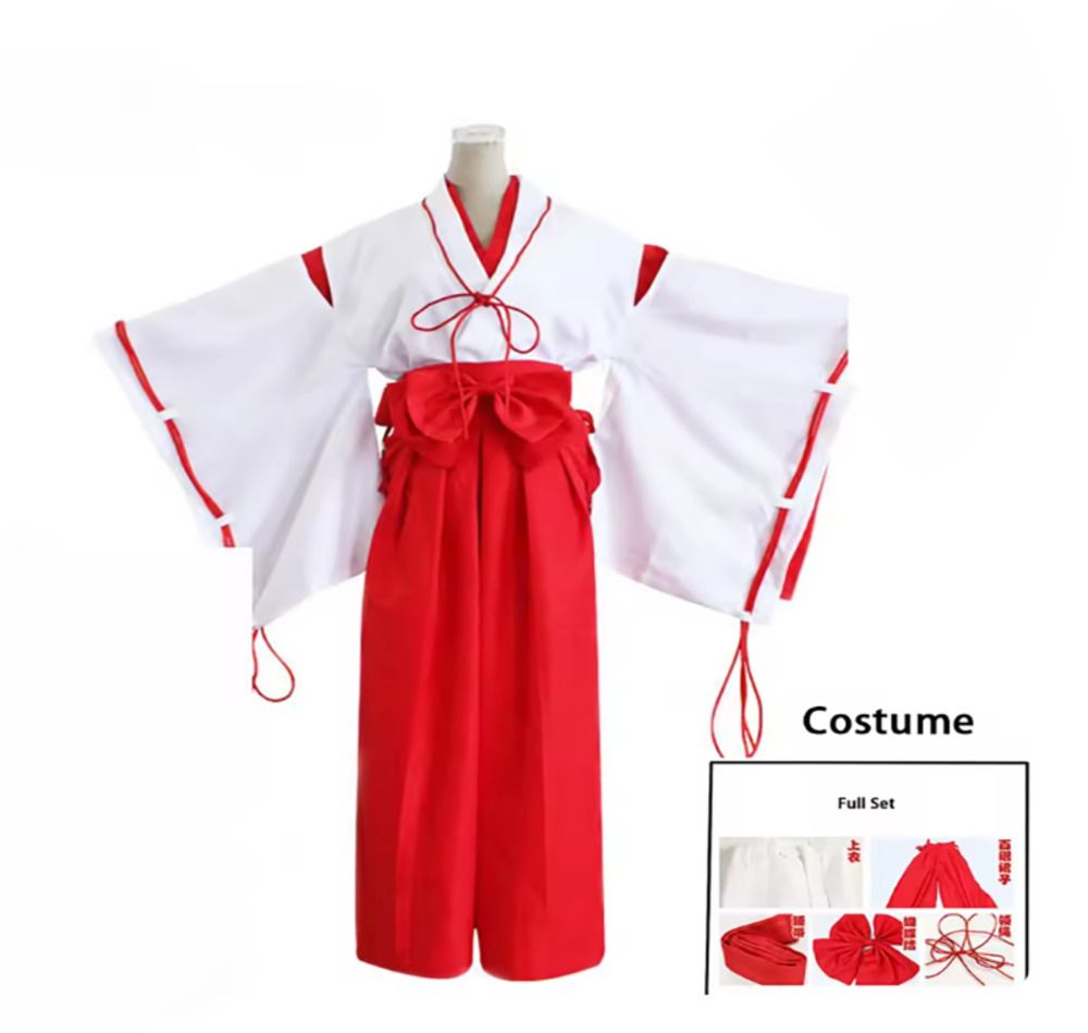 【この商品について】 伝統的な巫女装束を再現したコスプレ衣装セットです。 白と赤の上品なツートンカラーで清楚な印象を与え、イベントや撮影会、舞台などにもぴったり。 「犬夜叉」の桔梗や「東方Project」の博麗霊夢風のコスプレにもおすすめです。 【主な特徴】 ・白×赤の定番巫女スタイル ・上着+袴スカートの2点セット ・軽量ポリエステル素材で動きやすい ・文化祭や舞台衣装、コスプレイベントにも最適 ・ハロウィンや撮影会にも使える万能デザイン 【詳細】 素材:ポリエステル カラー:白×赤 セット内容:上着、袴スカート サイズ:S トップス丈:約73cm 袖丈:約45cm バスト:約114cm スカート丈:約64cm 適応身長:約155~160cm 【注意事項】 ・採寸には1~3cmの誤差がある場合があります。 ・洗濯は手洗いを推奨します。漂白剤の使用は避けてください。