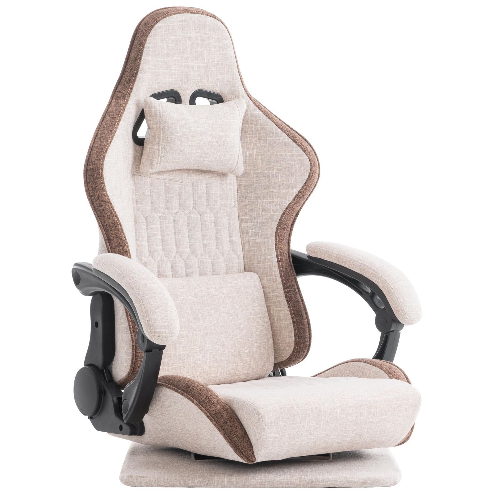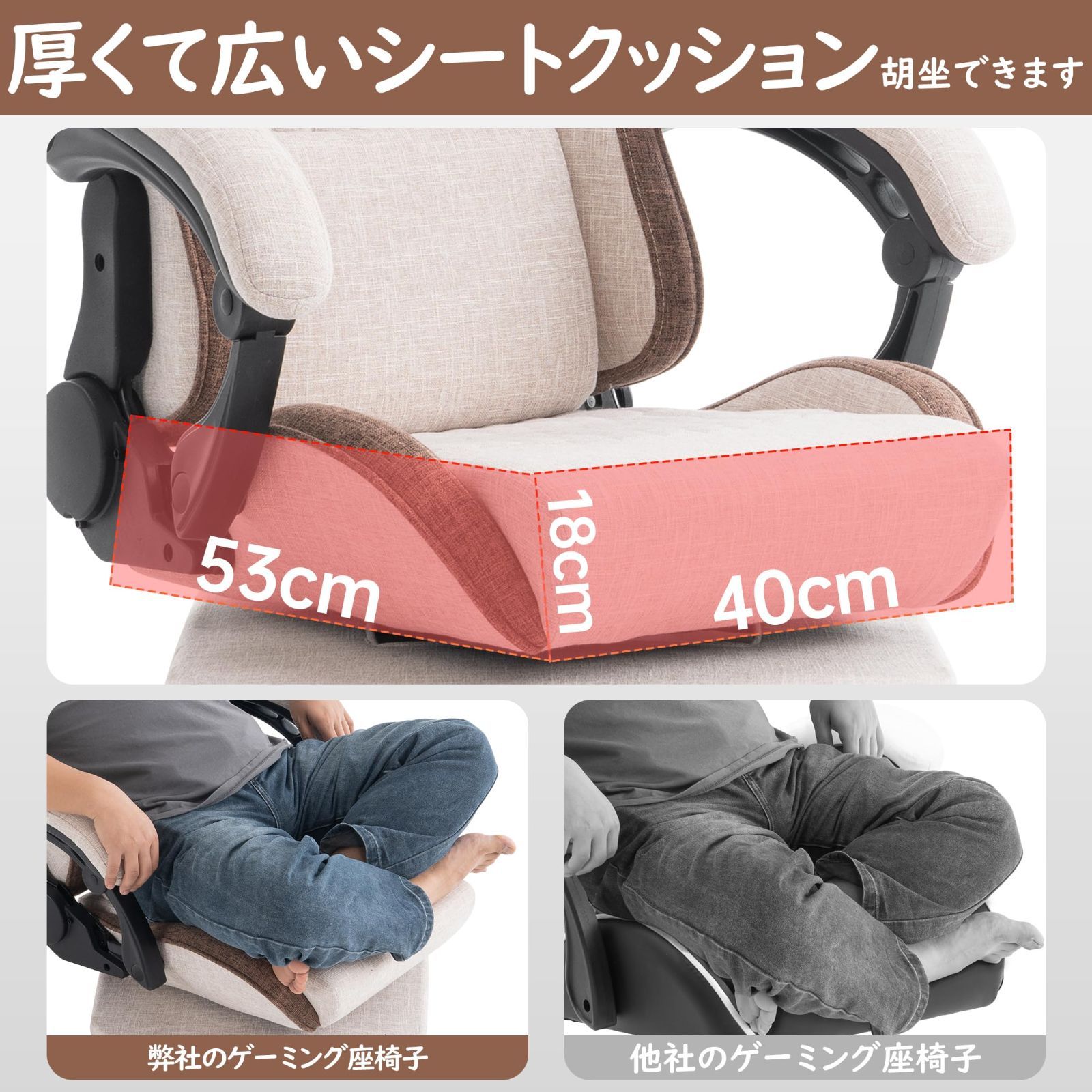 MOCHHOFU ゲーミング座椅子 ハイバック ファブリック 180°リクライニング ランバーサポート 連動アームレスト ファブリック 回転式 ヘッドレスト付 腰が痛くならない 360°回転 ベージュ