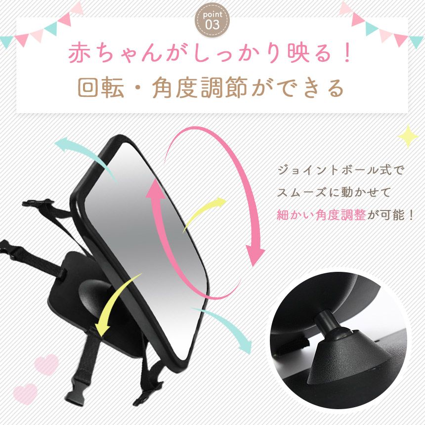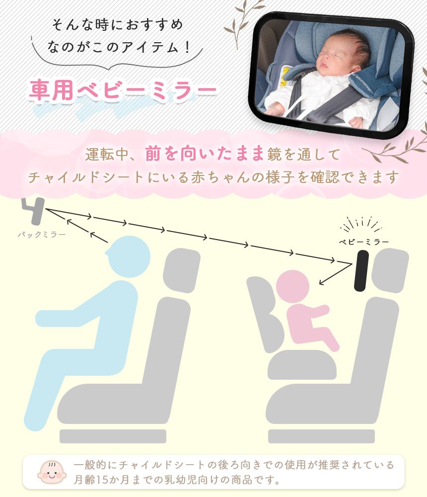 運転中前を向いたまま後部座席の様子をしっかり確認できるアイテムです。