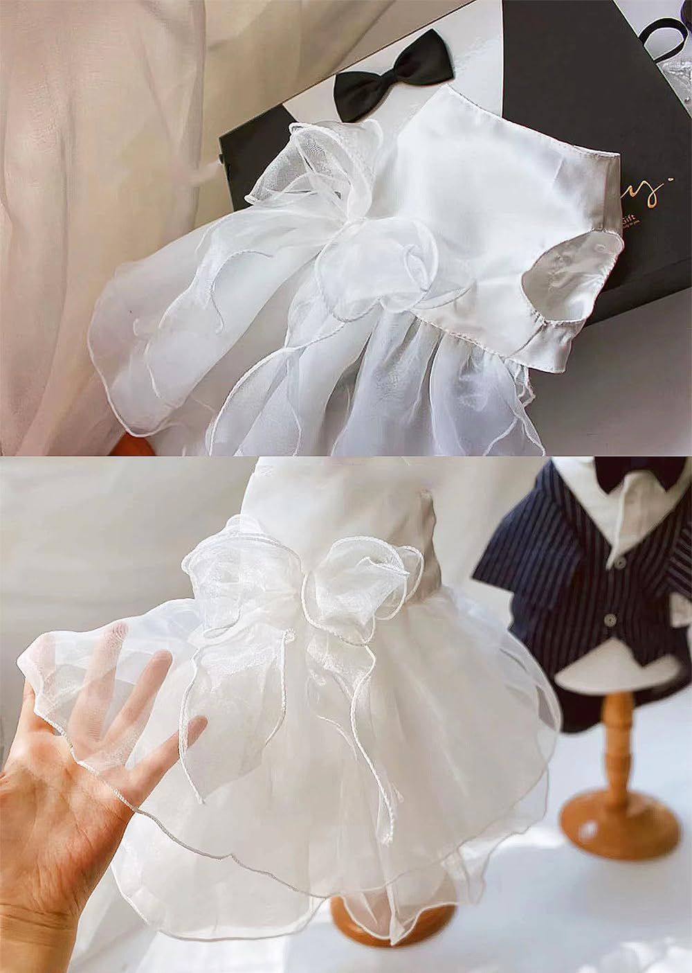YBGGJO 犬 ウエディングドレス ペットのドレス ドッグウェア 手作り犬服 パーティードレス ワンピース 上品 華やか お姫様 猫 小型犬 結婚式 お祝い 記念パーティー 記念撮影 (ホワイト XS)