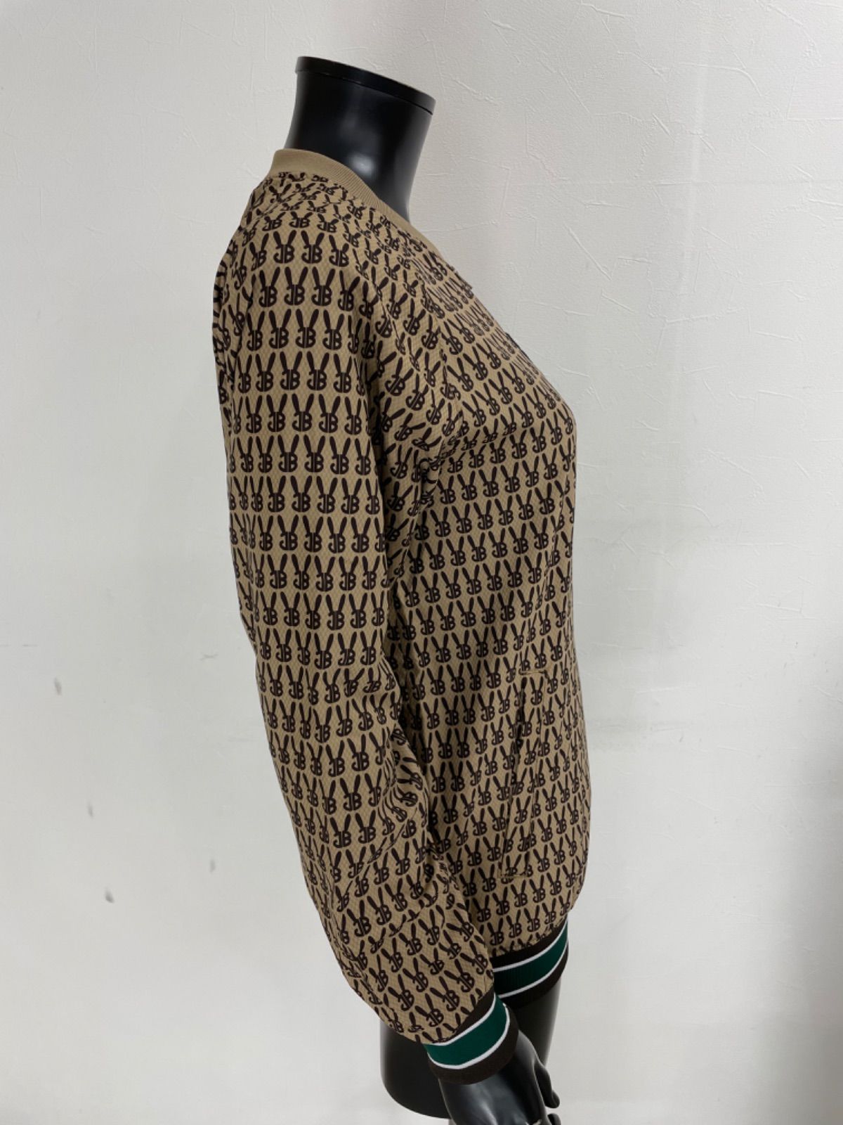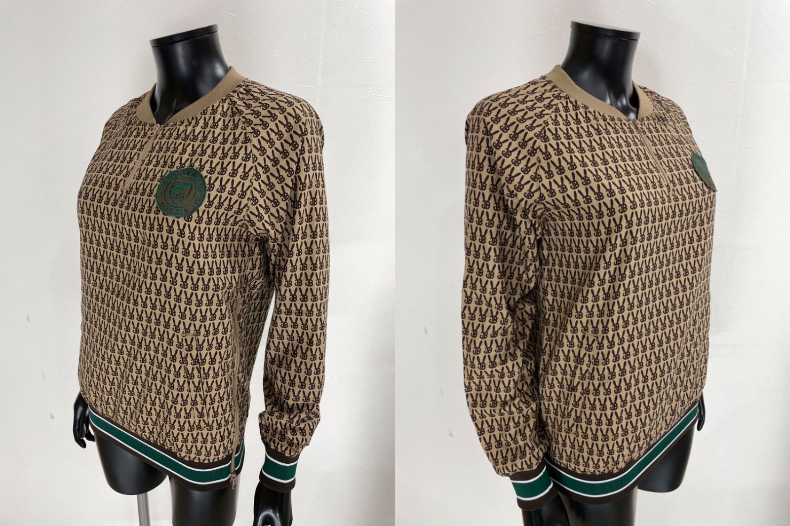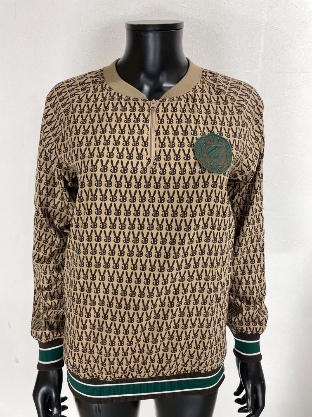 【USED】Jack Bunny ジャックバニー ポリエステル ハーフジップ 長袖 ブルゾン 裏起毛 総柄 ブラウン レディース 0 S ゴルフウェア