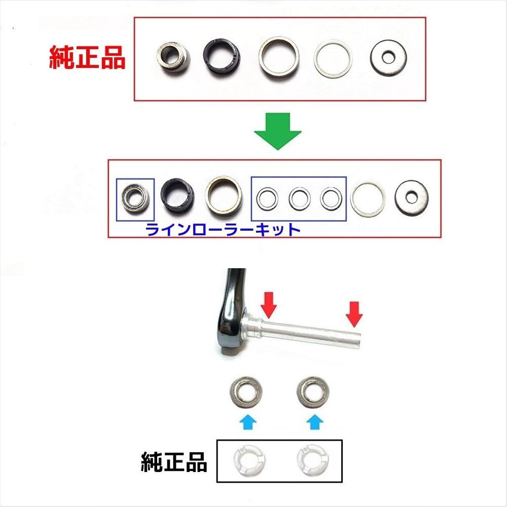 ・純正プラスチック部品をベアリングに交換することで動作が滑らかになります。