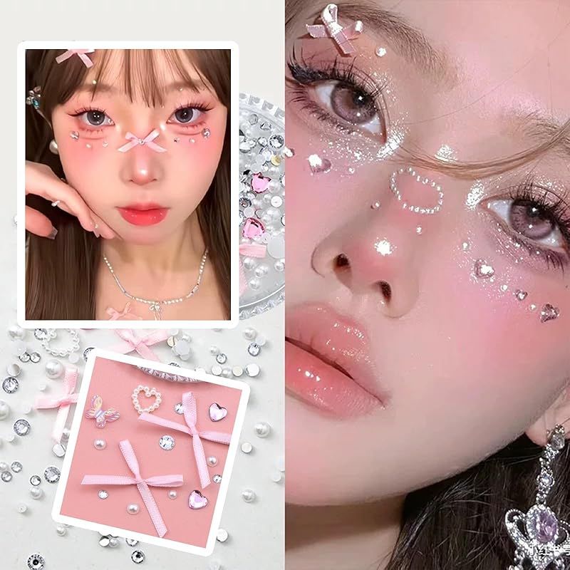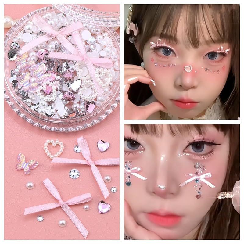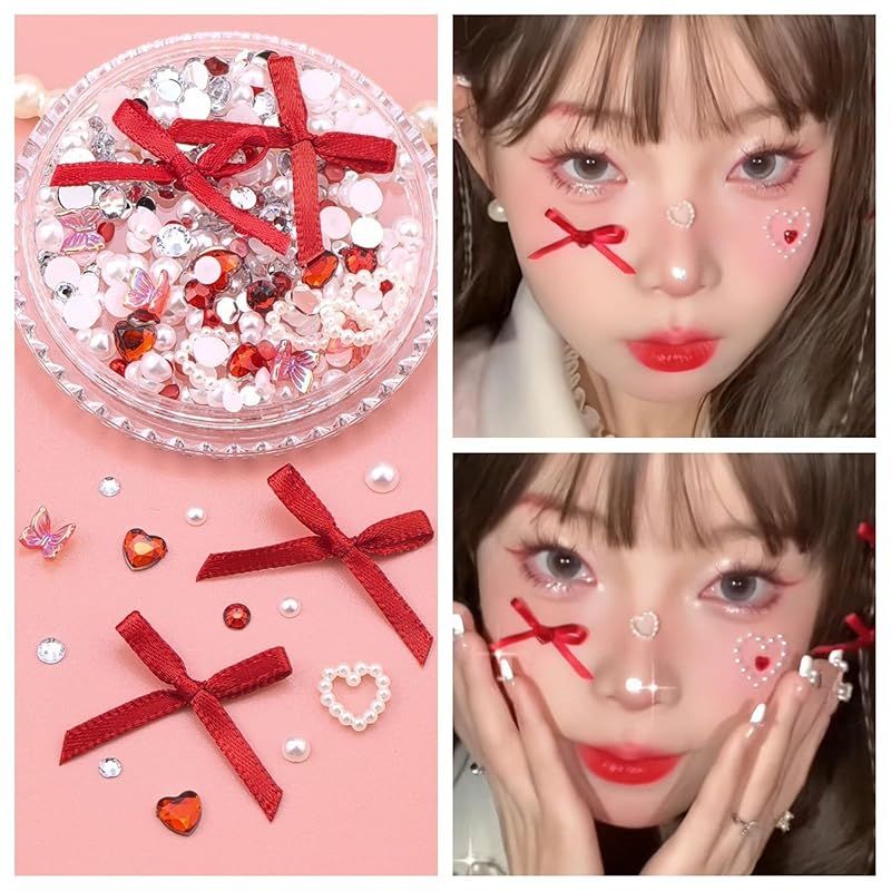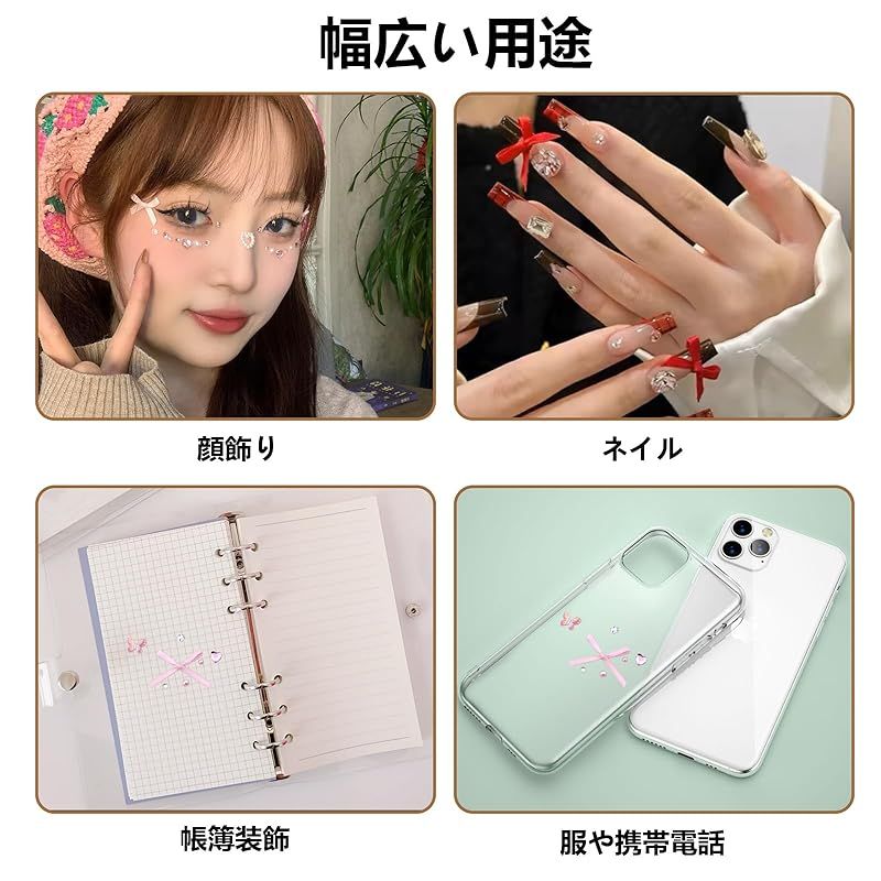 【メイクパーツ】かわいいリボン、ハート、蝶、スタイリッシュなデザイン。ステージや写真撮影などの場面で、目や顔、体の様々な部分に輝きを。自由に組み合わせて好きなところに装飾できます、あなたのユニークな魅力を引き出し、他人と異なる個性を演出します。