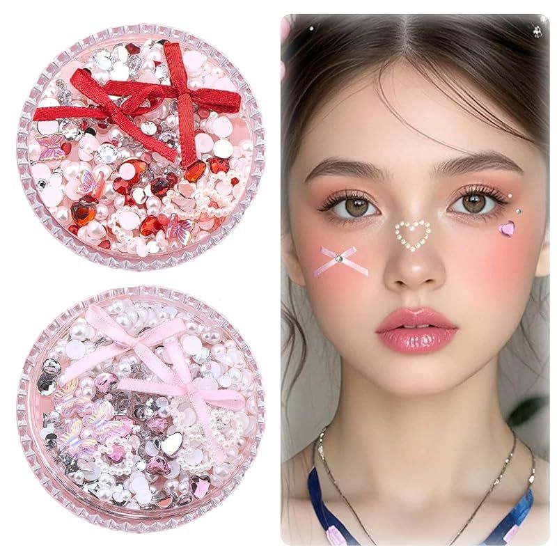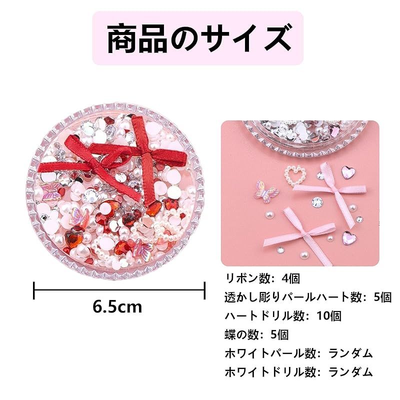 商品名:YANHUILAY メイクアップ用ラインストーン【2個セット】メイクパーツ リボン ハート型 樹脂真珠 蝶 かわいい 顔面デコ ネイルデコパーツ シェル ネイルパーツ 携帯電話飾り用 DIY用品 赤 ピンク