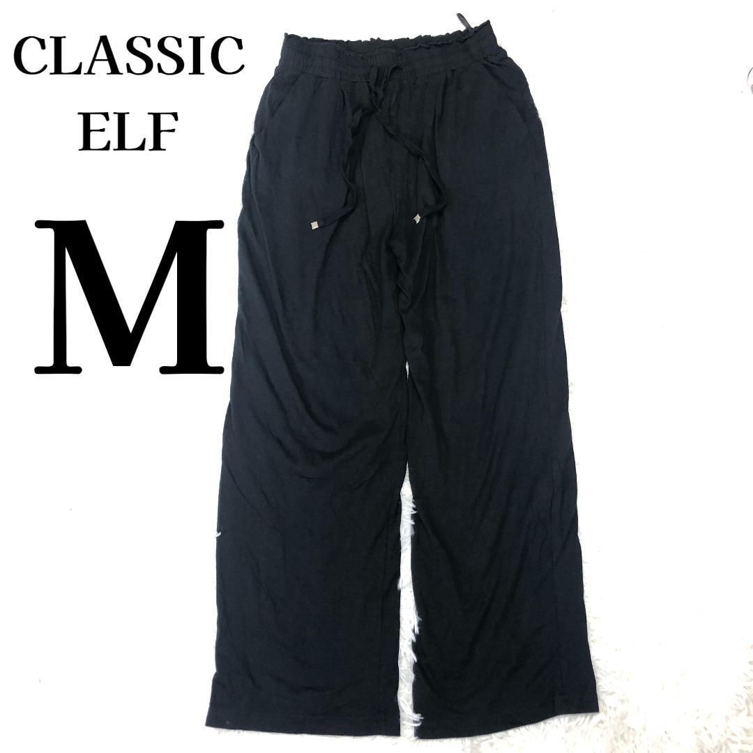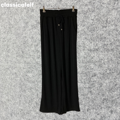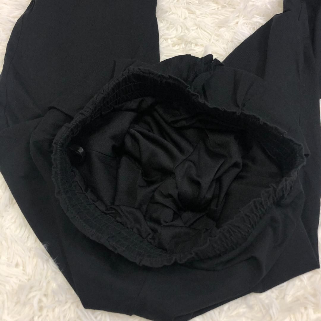 さらりとした肌触りの良い素材・リラックス感のある履き心地が魅力のブラックのワイドパンツです。ウエストはゴムとドローストリング(紐)で調節可能なので、お好みのフィット感で着用いただけます。両サイド、ポケット付き。ヒザ下位の位置まで裏地付きです。ストレッチが効いています。