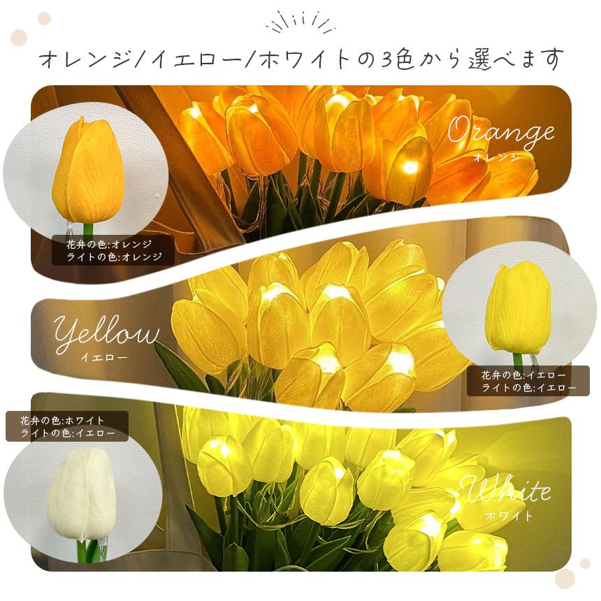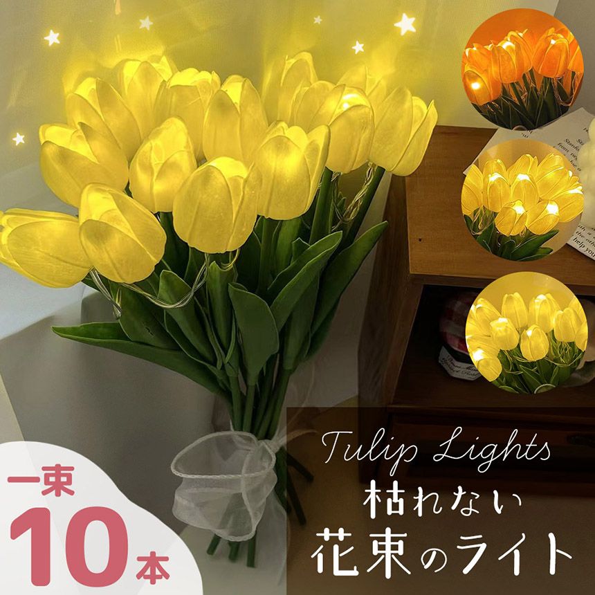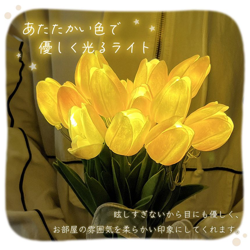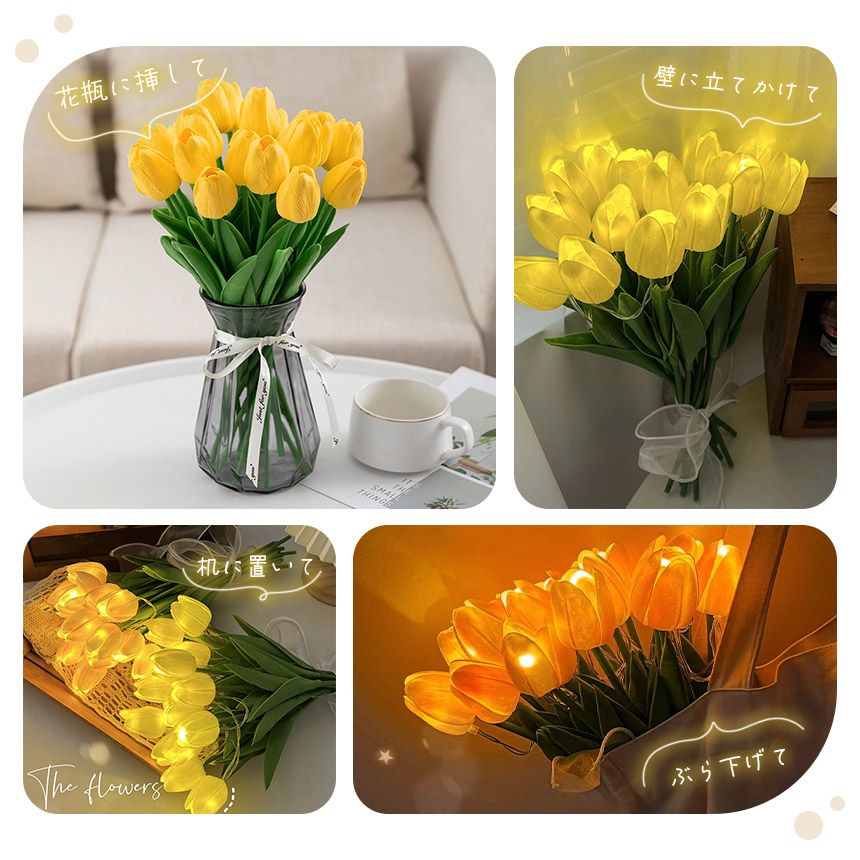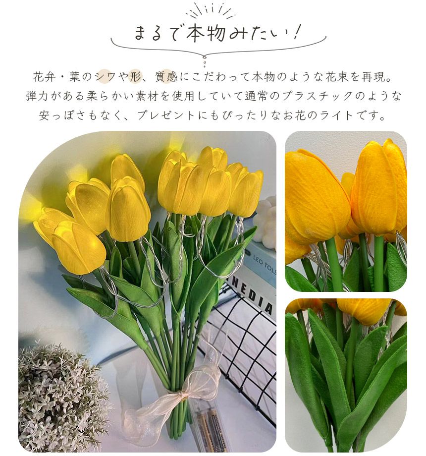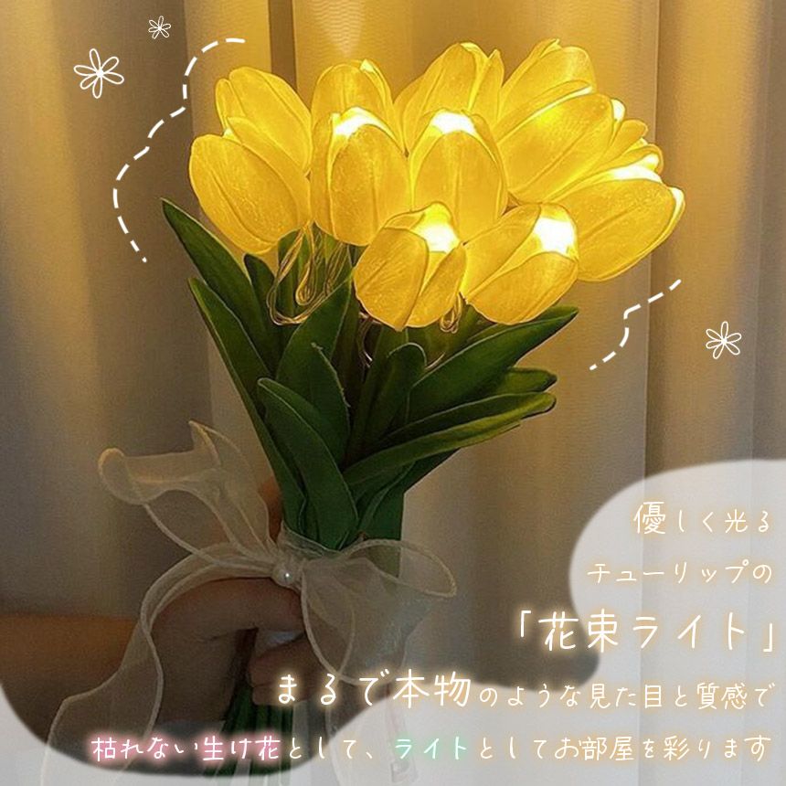 まるで本物のような質感のチューリップの花束のライトです。