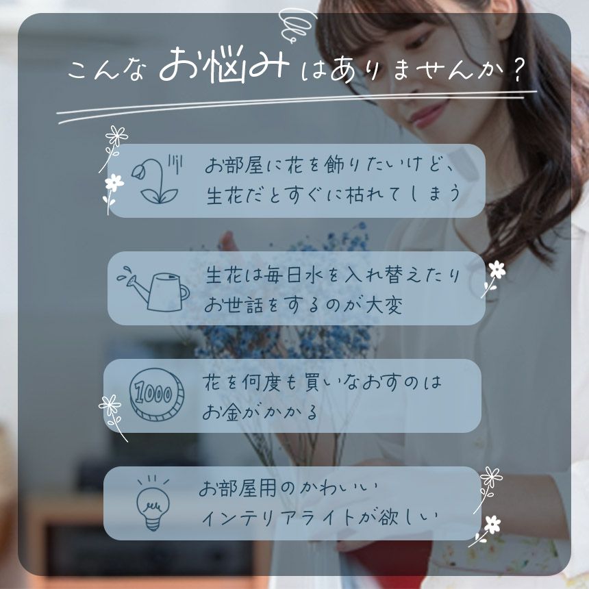 ・部屋に花を飾りたいけど生花だとすぐに枯れてしまう